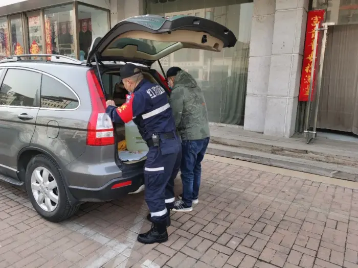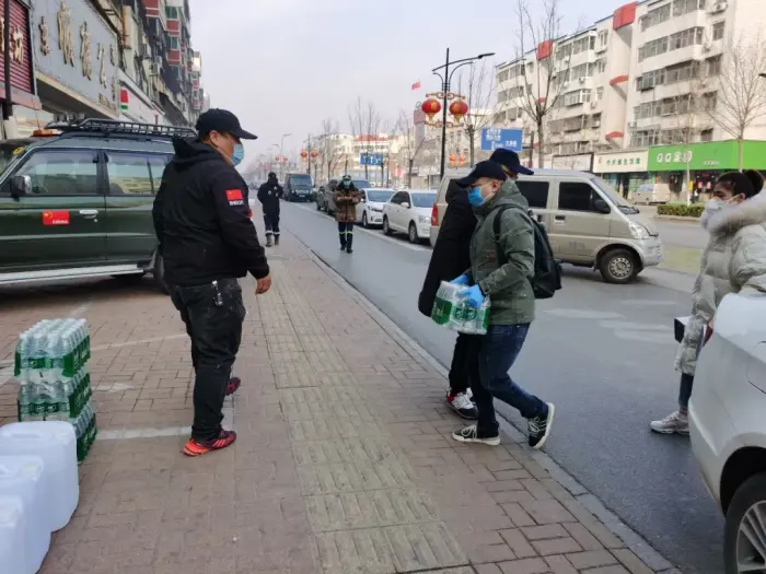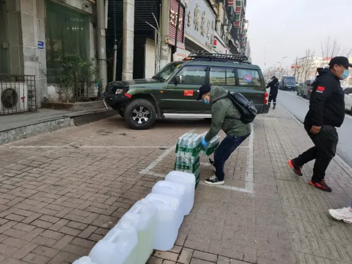2月18日上午,协会会长白鑫,秘书长邢俊娜、志愿者张岩、许浩然等一行,来到河南开封红豹救援队,对他们进行慰问,送来了120斤酒精、200斤84消毒液、喷壶。八宝粥,牛奶等副食慰问品10件,为红豹救援队带来了一份温暖与热情,给红豹救援队在物资紧缺的情况下,带来自兄弟公益团队的一份温暖,鼓励了红豹救援队为民服务的一份昂扬斗志。