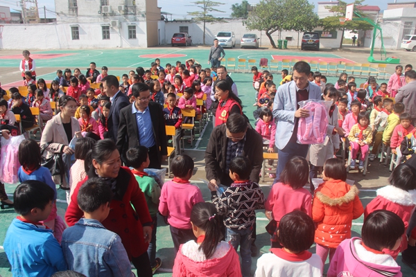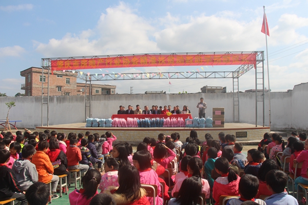 2018年11月22日,肇庆市青怡爱心会会长邓洪、肇庆市房协李志江会长、张坚终顾问、刘广庆顾问以及肇庆宇浩地产发展有限公司、广东东方阳光地产有限公司(思源•东方阳光慈善`基金)、东莞市光大物业管理有限公司肇庆分公司、肇庆市恒裕房地产开发有限公司、肇庆市华丽置业房地产有限公司等代表一行30多人到怀集县冷坑镇岗脚村小学进行爱心捐助。冷坑镇人大副主席黎惠石先生,冷坑镇中心小学副校长李绍安先生,岗脚小学钟校长,岗脚村委会钟群田主任、学生以及市住建局驻村干部参加了本次爱心捐助活动。