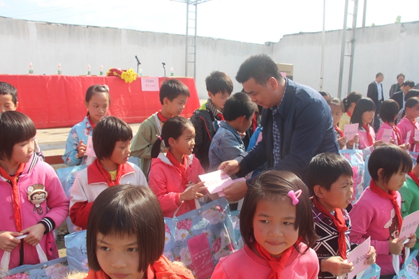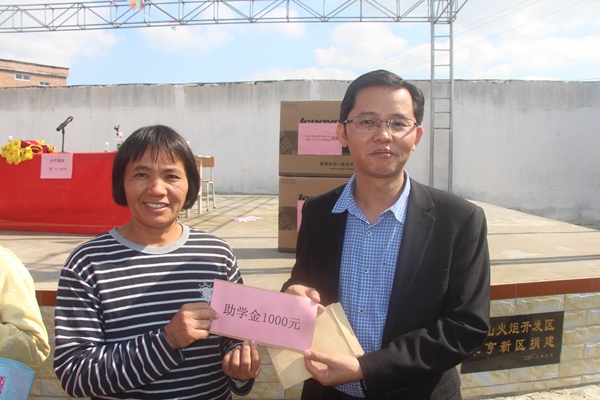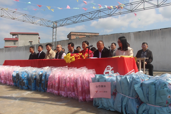 这次扶贫助学活动由广东宇浩地产、广东东方阳光地产、东莞光大物业粤西分公司、肇庆华英集团、肇庆恒裕房地产、金匙物业肇庆分公司等6家企业及青怡爱心会慷慨解囊,对岗脚小学图书室建设、操场建设、贫困学生及优秀学生进行资助共3.5万元,其中9600元的物资由广东东方阳光地产直接购买送到学校,余下的由肇庆市青怡爱心会负责执行送到学校。