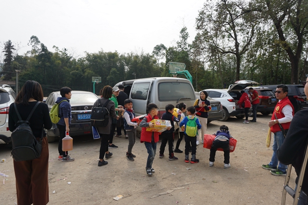 活动当天,一支由 40位大小志愿者组成的爱心队伍按时奔赴怀集县凤岗镇,远道而来的志愿者们宛如一道温暖而亮丽的风景线,为困难群众带来新春的暖意与希望。其中,小志愿者们最是令人感动,他们积极地帮忙提爱心物资并且暖心地与受助学子交流,可爱善良的小志愿者们发出强大的爱心力量。
