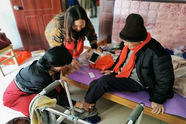 活动中,志愿者们为每一位老人送上一双温暖的毛毛鞋和一条承载着爱心和喜气的“中国红”围巾,同时贴心地与老人们话家常:一声“爷爷奶奶”满含深情,一份“家常礼物”满载亲情,一句“身体健康”倾注祝福。志愿者们用最平凡的行为诠释最真、最纯、最暖的尊老敬老中华传统美德。