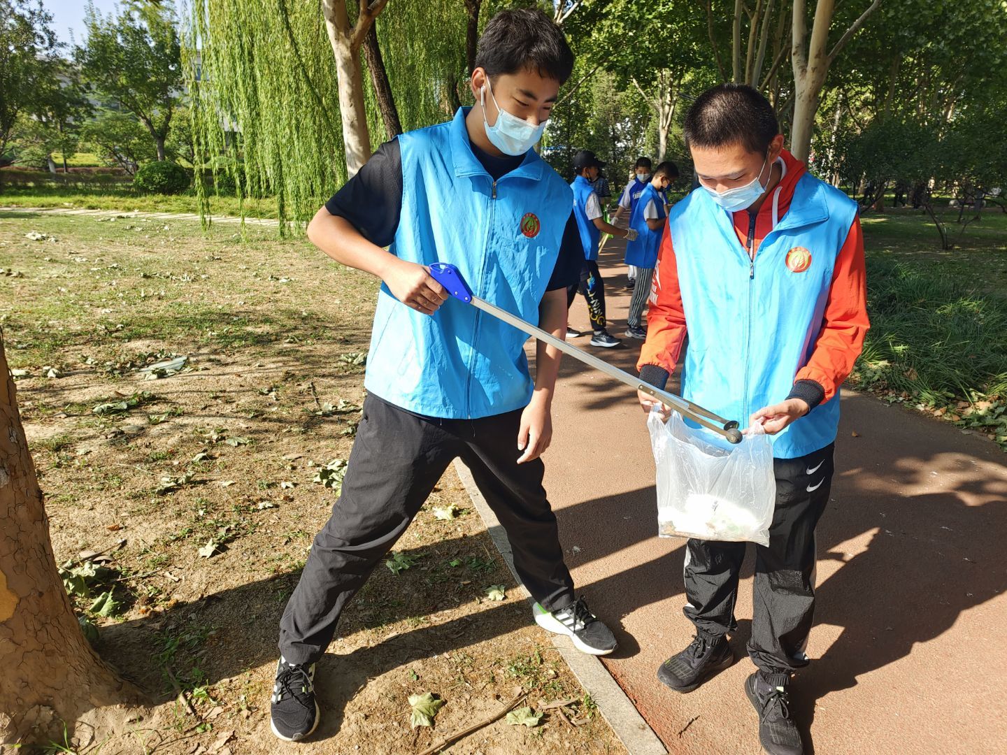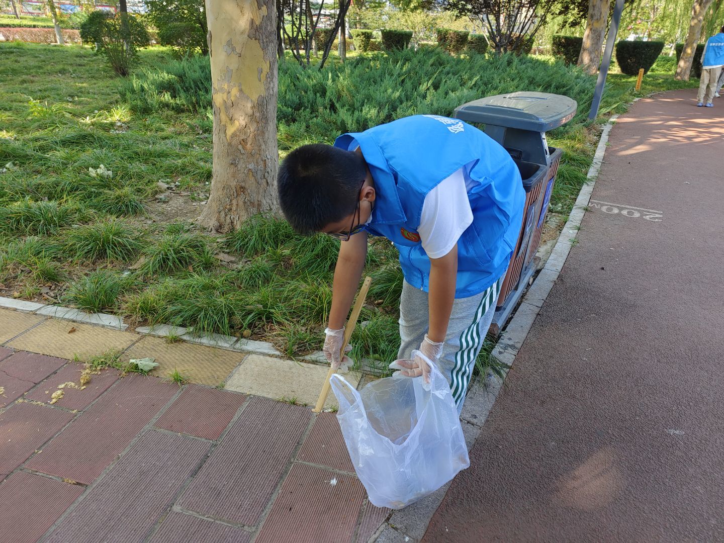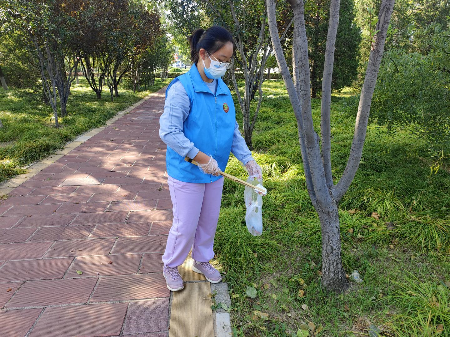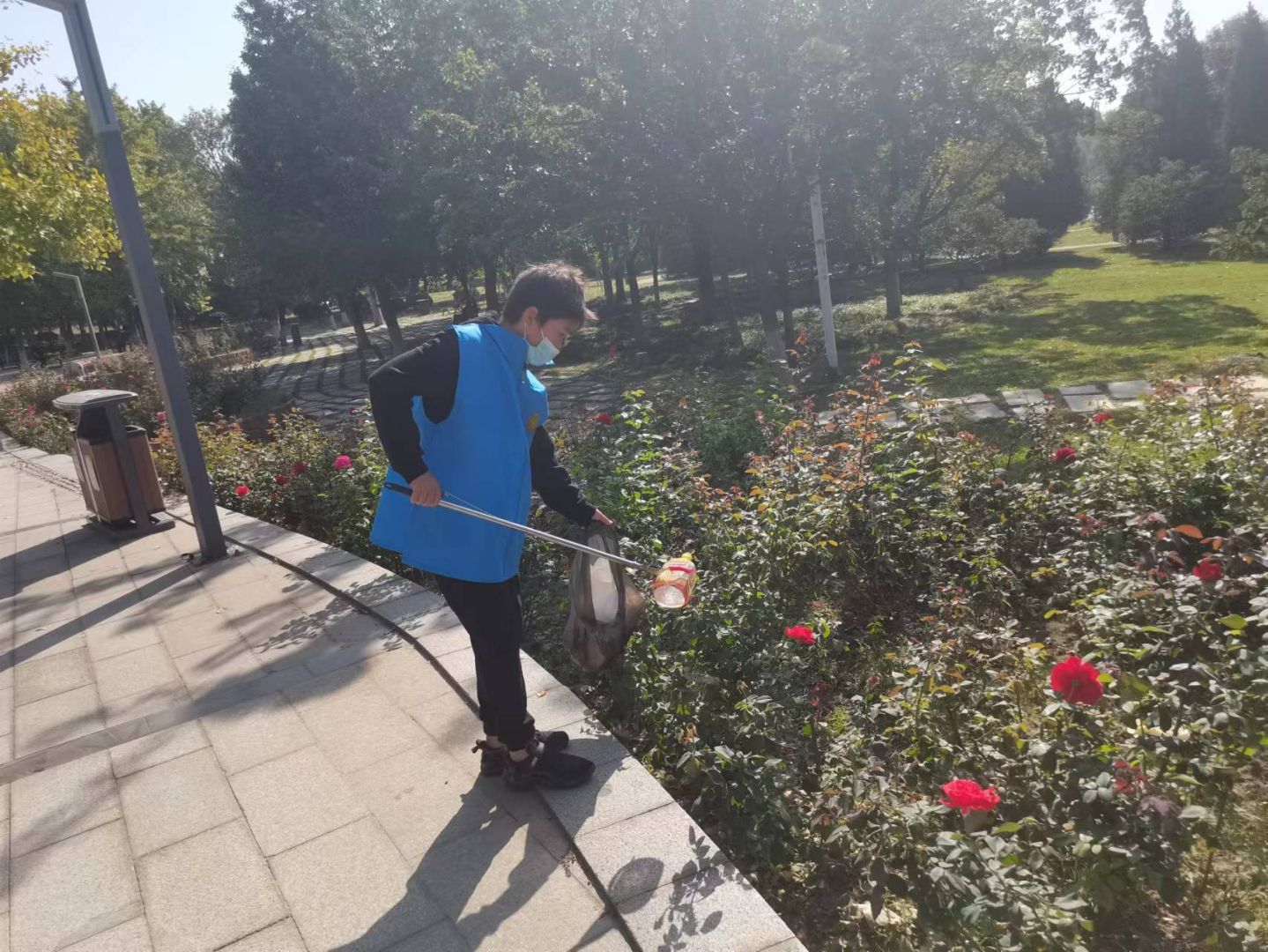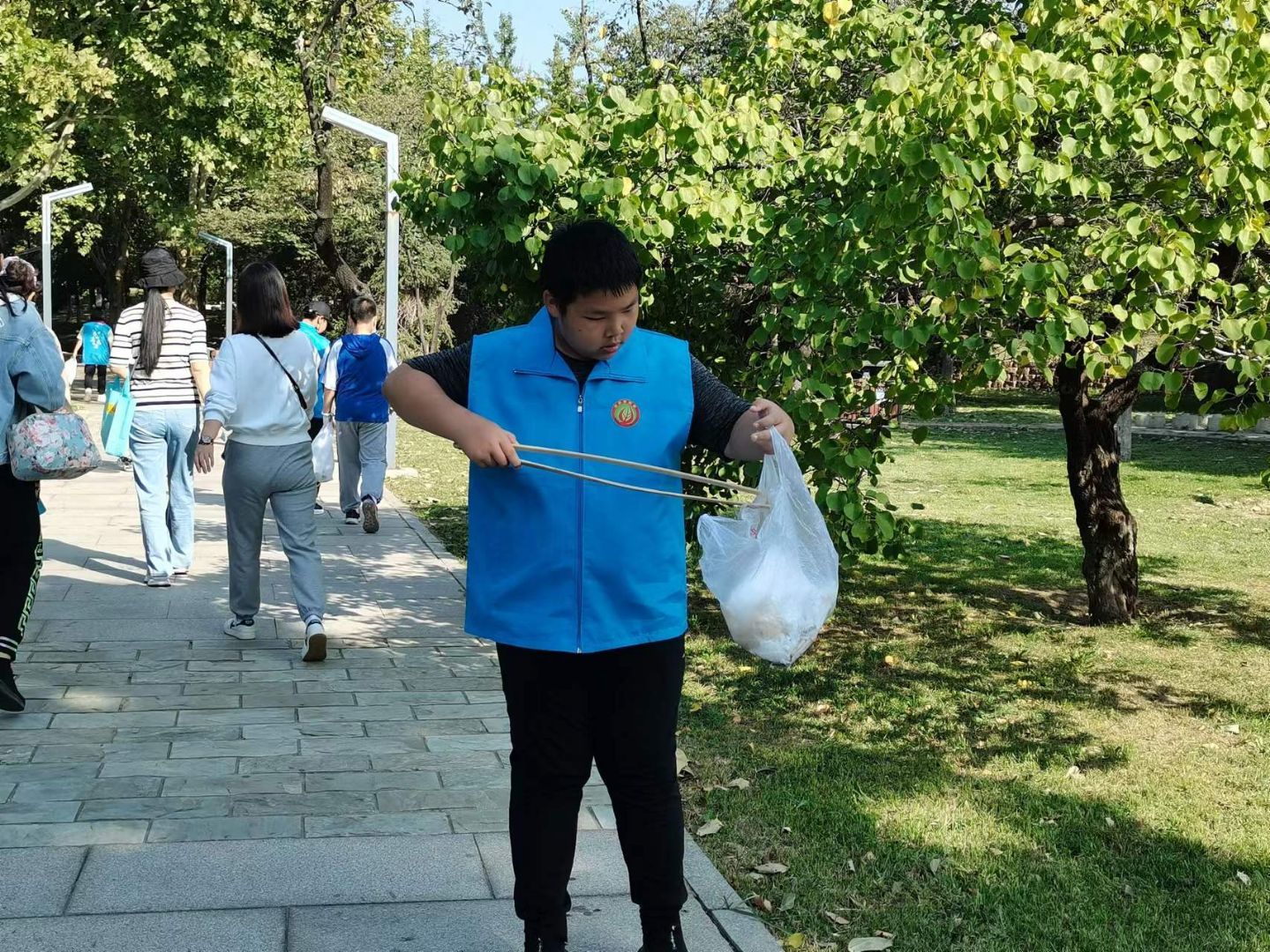 经过简短的活动介绍和号召后,志愿者们开始了清洁活动,他们捡拾了草地的垃圾,清理了地面和电线杆上的小广告,也向游园的人宣传了文明出游和环保的知识。通过志愿者们的辛勤劳动,使草坪和路旁的垃圾有所消减,让公园的环境更加舒适宜人。通过志愿者们的积极宣传,在草地玩儿的小朋友们也受到影响,自觉把垃圾扔到垃圾桶里。此次活动得到了游人的支持和赞赏,提高了大家的文明出游的觉悟。