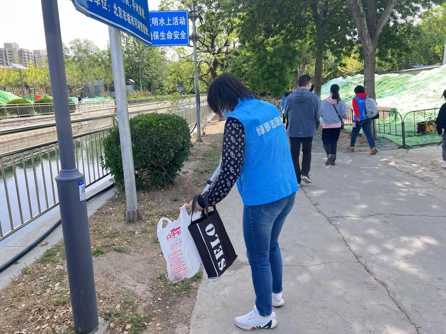 当天上午,志愿者们在领队的带领下,自愿分成几个小组,每组都有各自负责的区域,大家将拾起来的垃圾进行分类后装到不同的垃圾袋中。完成自己的任务后再去帮助其他组的成员。整个活动现场体现了志愿者的团结、互相帮助的协作精神。
