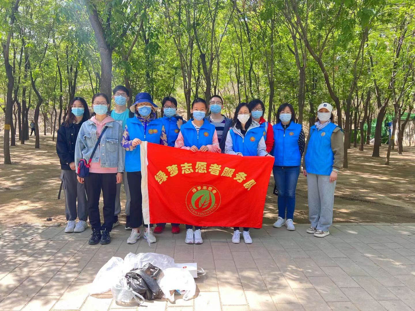 2023年5月7日上午9点,绿萝志愿者团队在牡丹园地铁C口集合,开展爱护环境,户外清洁活动。