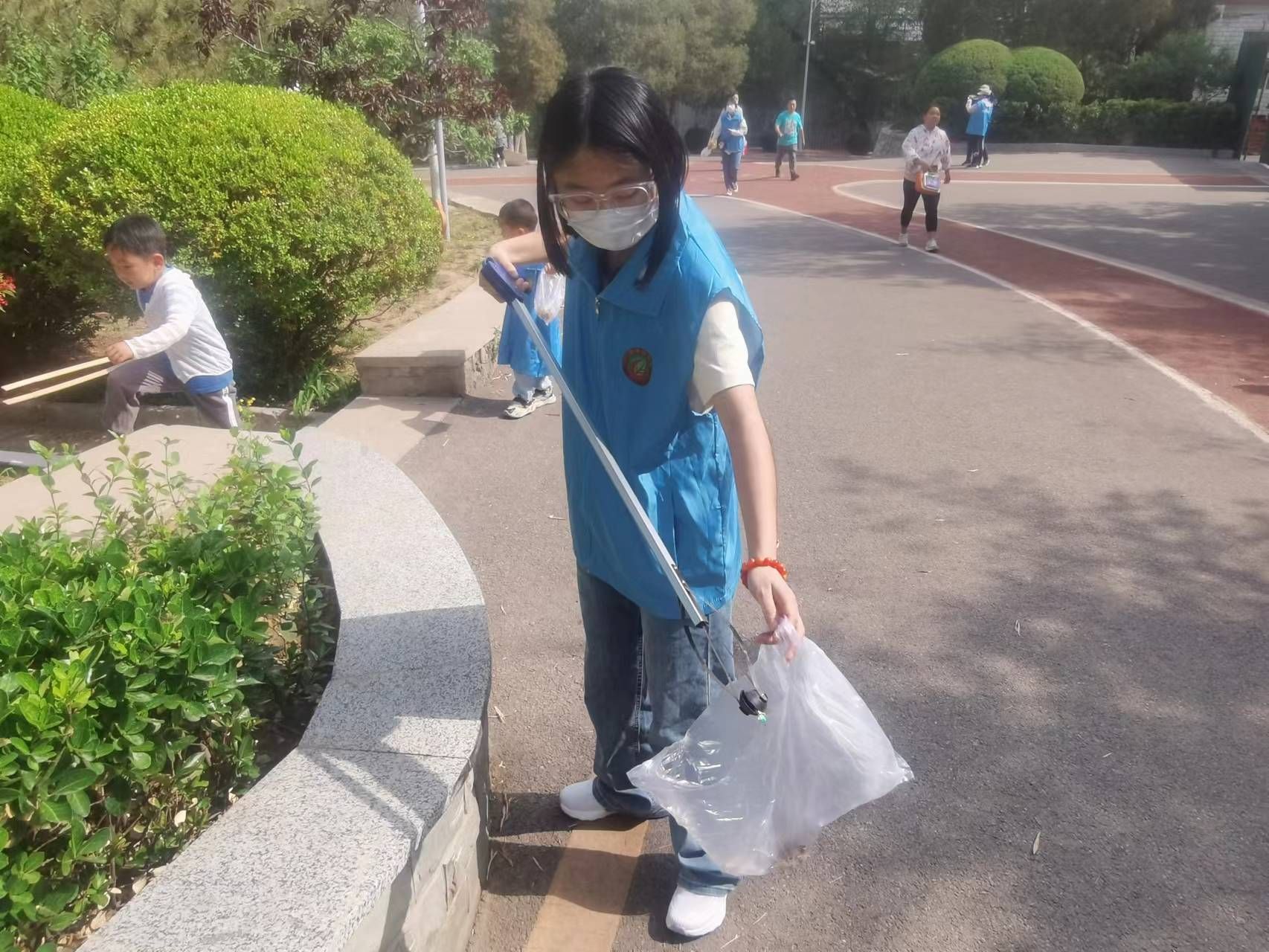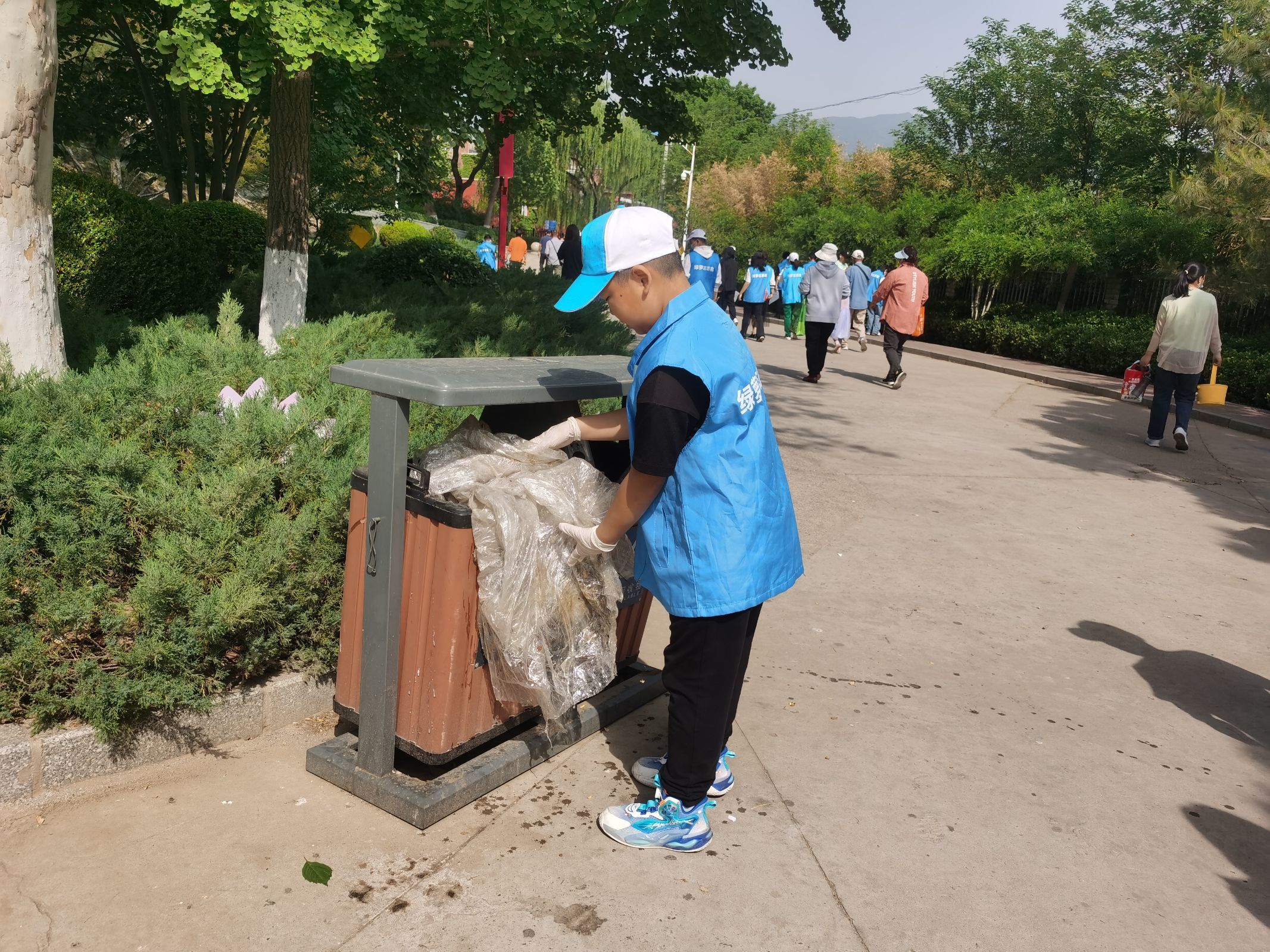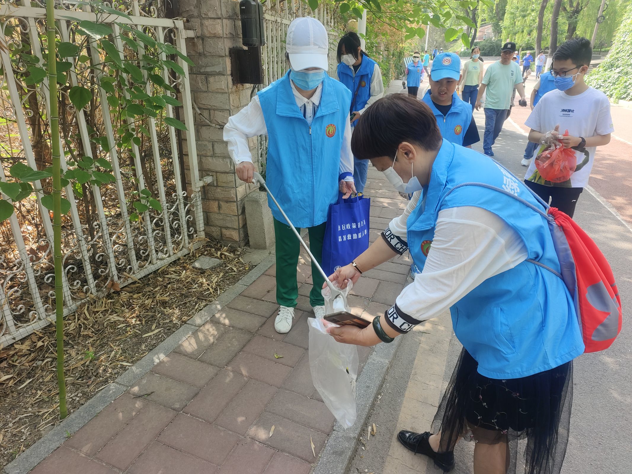 活动中,志愿者们本着“不怕脏,不怕累,责任当使命”的精神,身穿蓝马甲,手拎垃圾袋,争先恐后的在公园的路上及草坪里认真地捡拾路人丢弃的烟头、碎纸屑、塑料袋等,经过不懈努力,公园及草坪上的各类垃圾已被基本清理干净。通过志愿活动,不仅净化了公园的环境卫生,也提高了“我为人人,人人为我”的服务意识。
