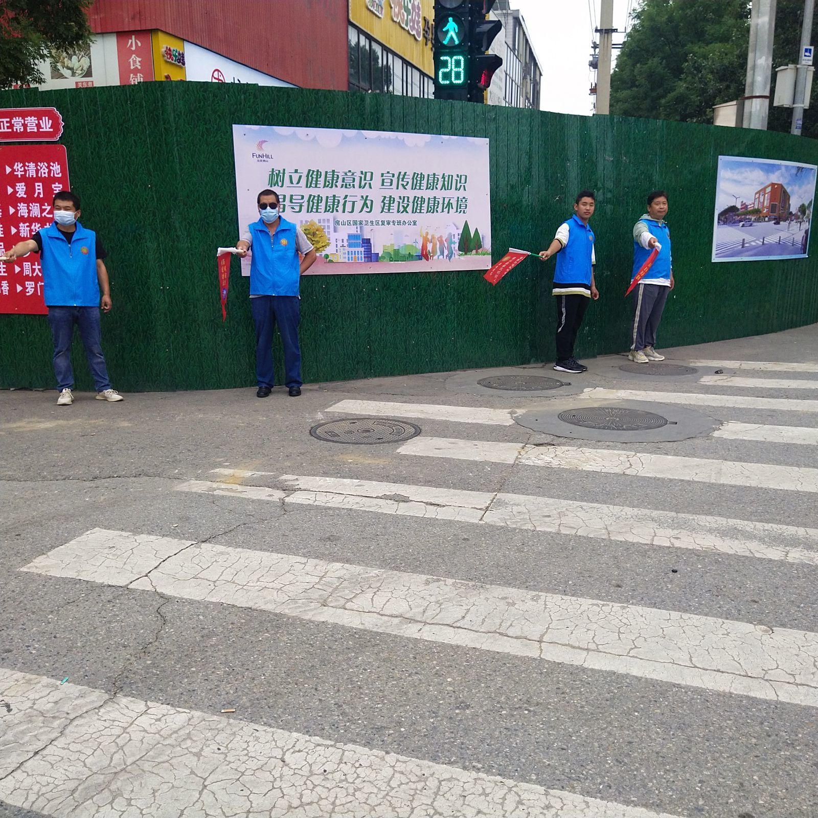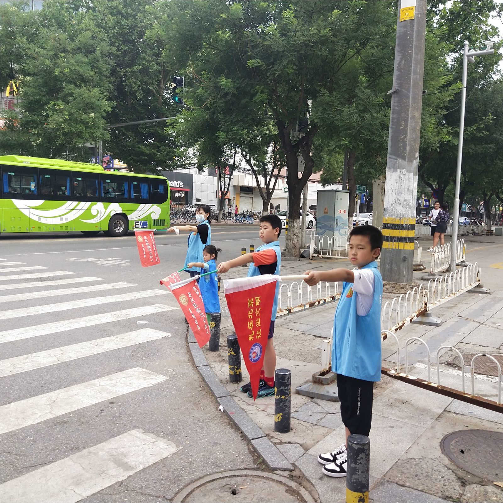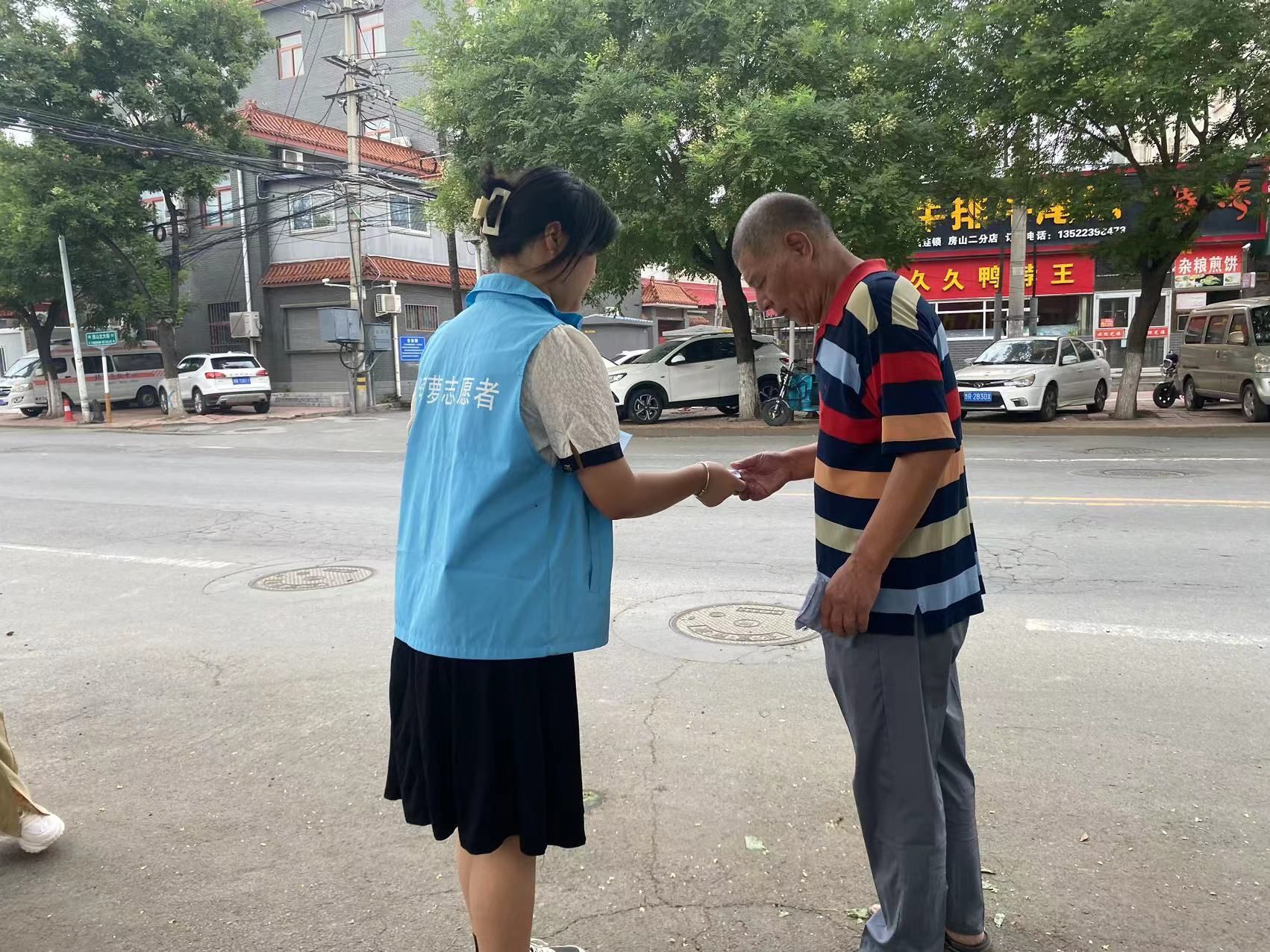 为构建文明、守法的社会序,加强道路交通管理,形成文明出行习惯,2023年7月29日上午,绿萝志愿者团队“礼让斑马线”兼“法律援助宣传”志愿活动在房山大角红绿灯展开。
