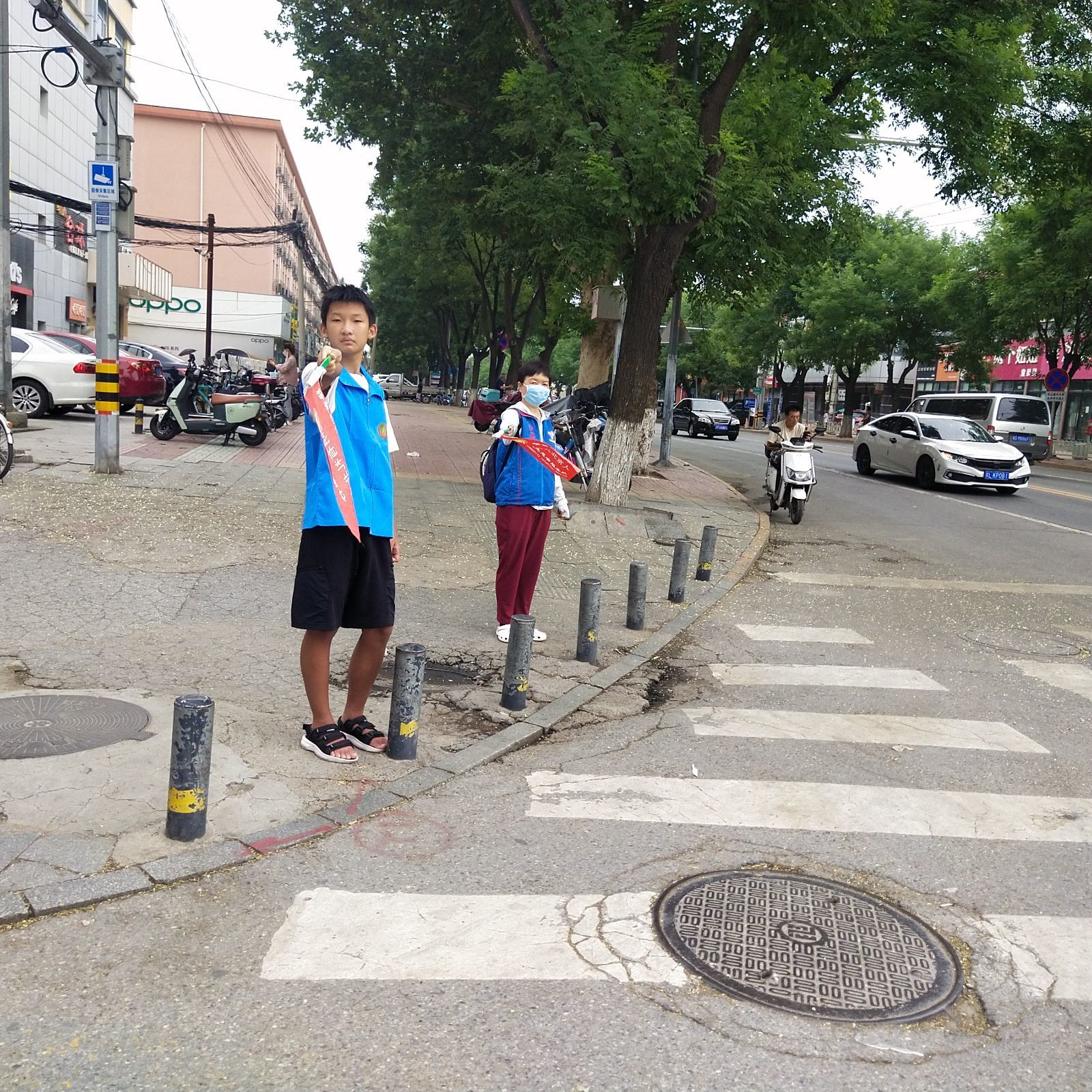 活动中,绿萝志愿者在人来车往的重点路口引导来往行人、车辆文明有序出行,积极上前进行劝导有意闯红灯的行人,对问路的行人帮助查询指路。斑马线是生命线也是文明线,志愿者为了行人的安全放弃休息,坚守在斑马线上,时刻疏导路口秩序,为行人安全保驾护航。