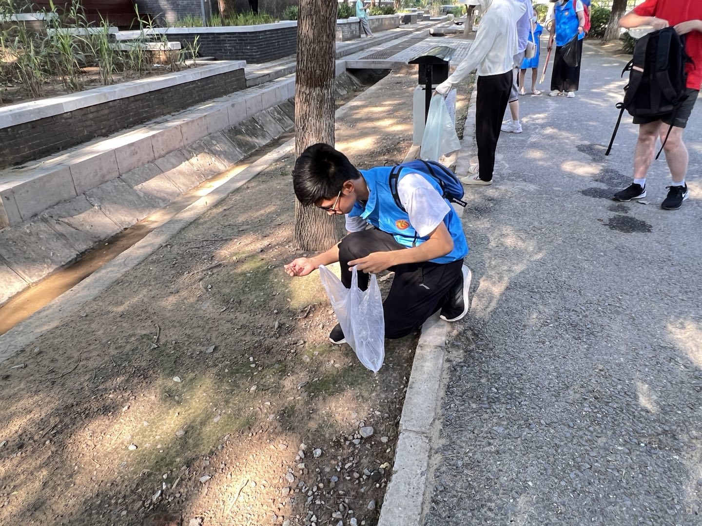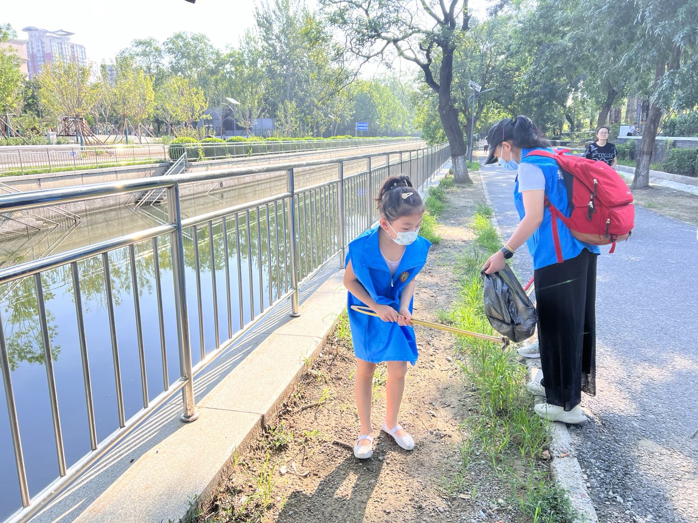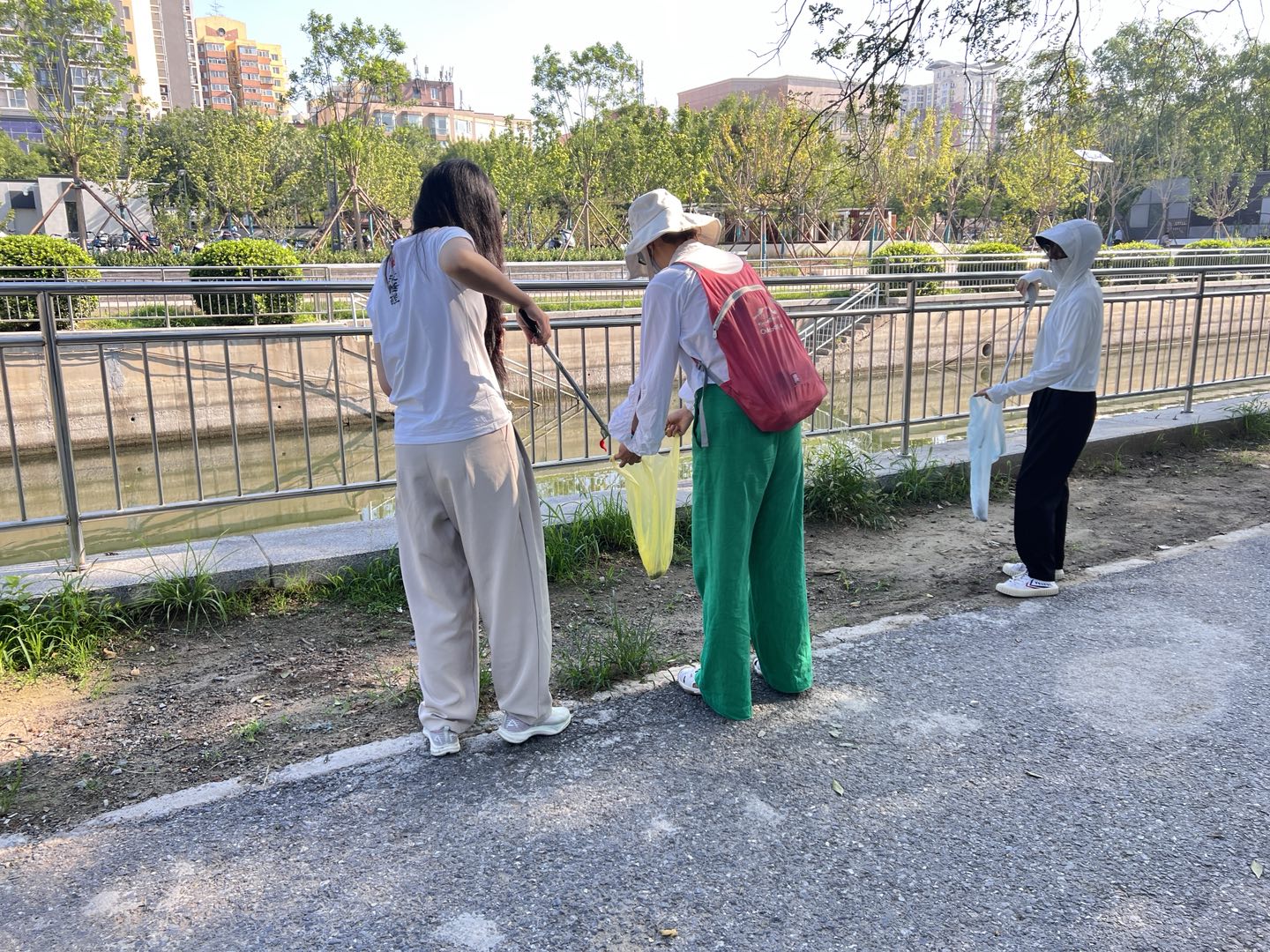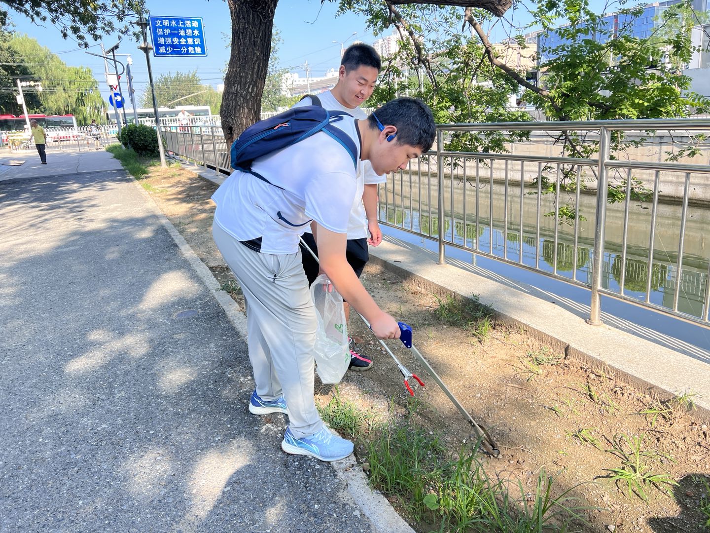 在清洁活动中,大家热情高涨。在领队的带领下,分工合作,配合默契。对现场的每个角落都进行了查看,像河道边上、树木旁、道路两侧,都有志愿者的身影。大家不怕苦、不怕累把捡拾起来的垃圾进行分类放到垃圾袋中。看着自己一身灰尘换来的整洁环境,脸上都洋溢着快乐的笑容。