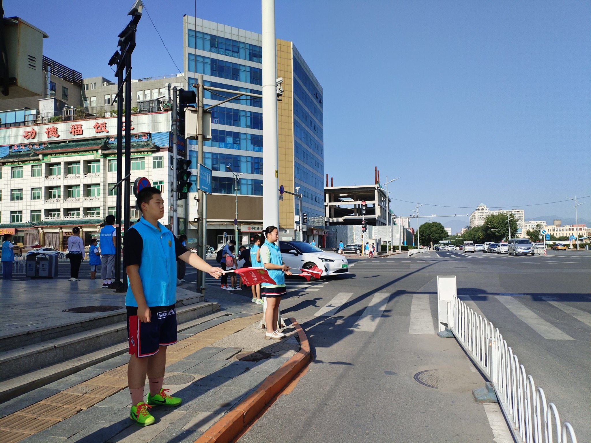 活动中,志愿者们身穿志愿蓝马甲,手拿导引旗,随着信号灯的颜色,热情有序的引导非机动车停在斑马线外,指挥行人绿灯亮起走斑马线,并对个别不遵守交通秩序的行人耐心劝阻。烈日炎炎,志愿者们仍然用标准的姿势和一丝不苟的负责态度,坚守在繁忙的十字路口斑马线上,为繁华路口疏导秩序,为行人安全保驾护航。