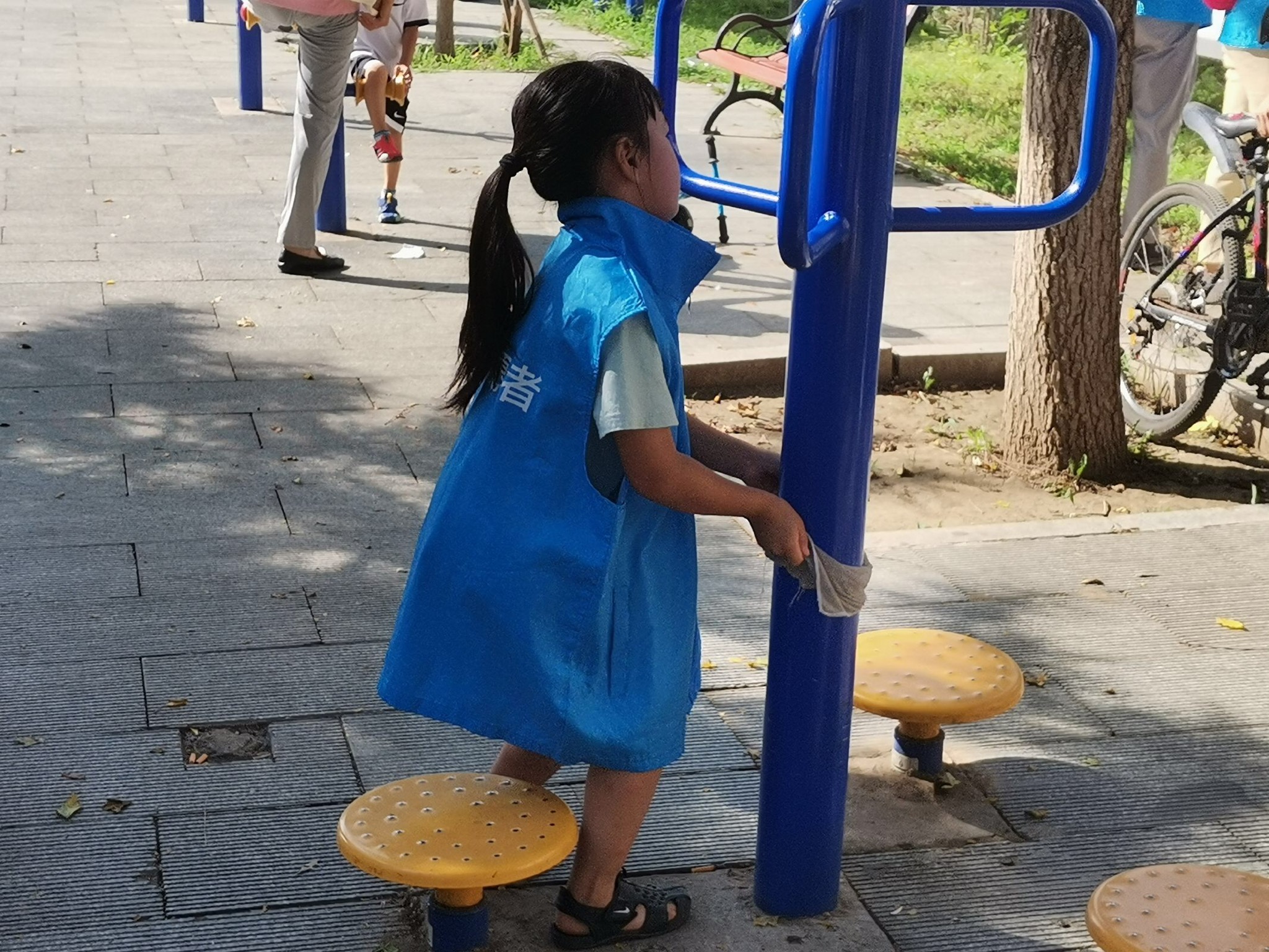 活动中,小小文明志愿者沿着人行道,手持抹布、垃圾铲等清洁工具,按照既定分工,深入绿化带、草丛等卫生死角清理垃圾,认真清理草丛中零食包装袋、烟头以及路边垃圾,清除积水、淤泥、枯枝落叶、散落垃圾等,细致的擦拭着道路两旁的公告栏和文明标语,清除卫生死角,用实际行动维护环境整洁。