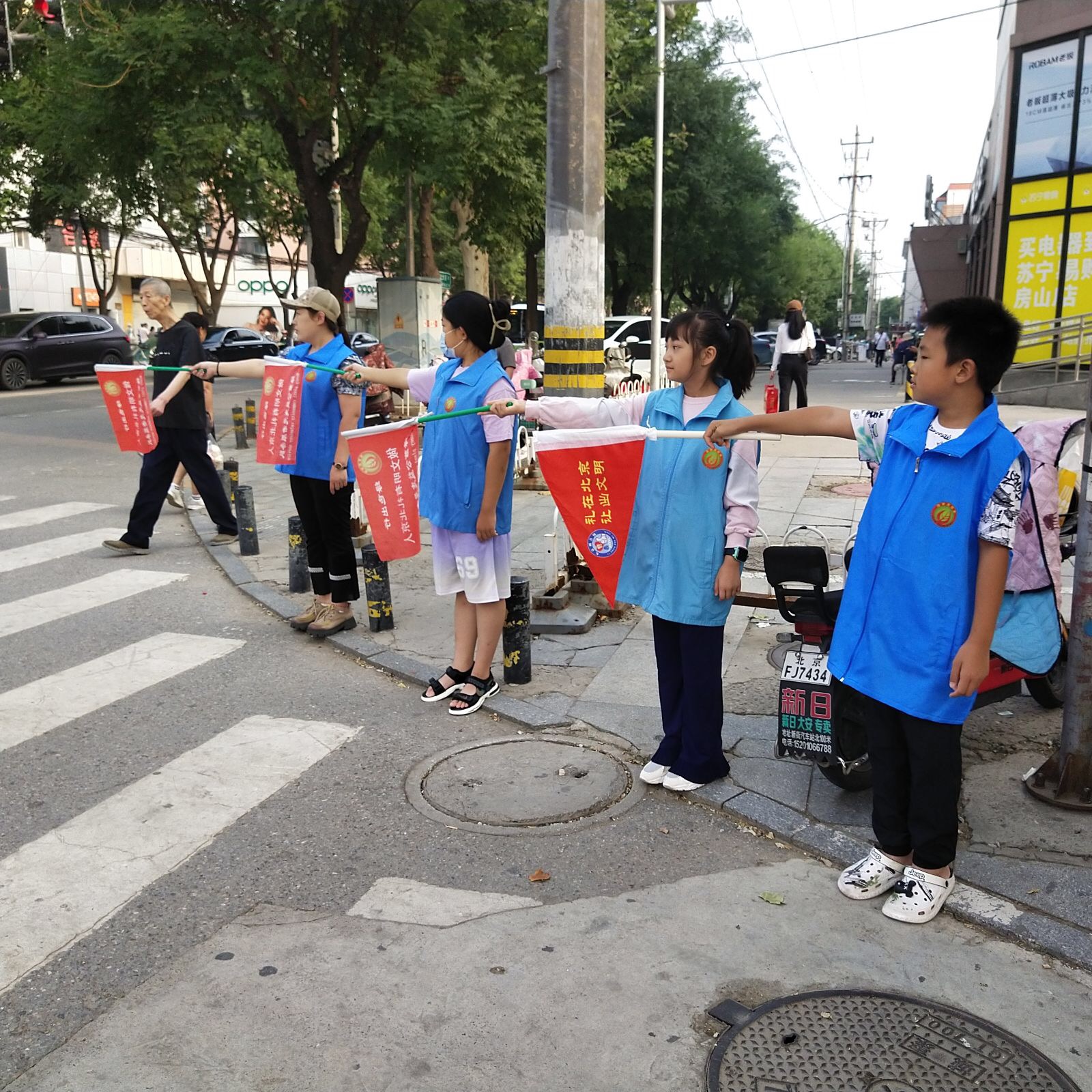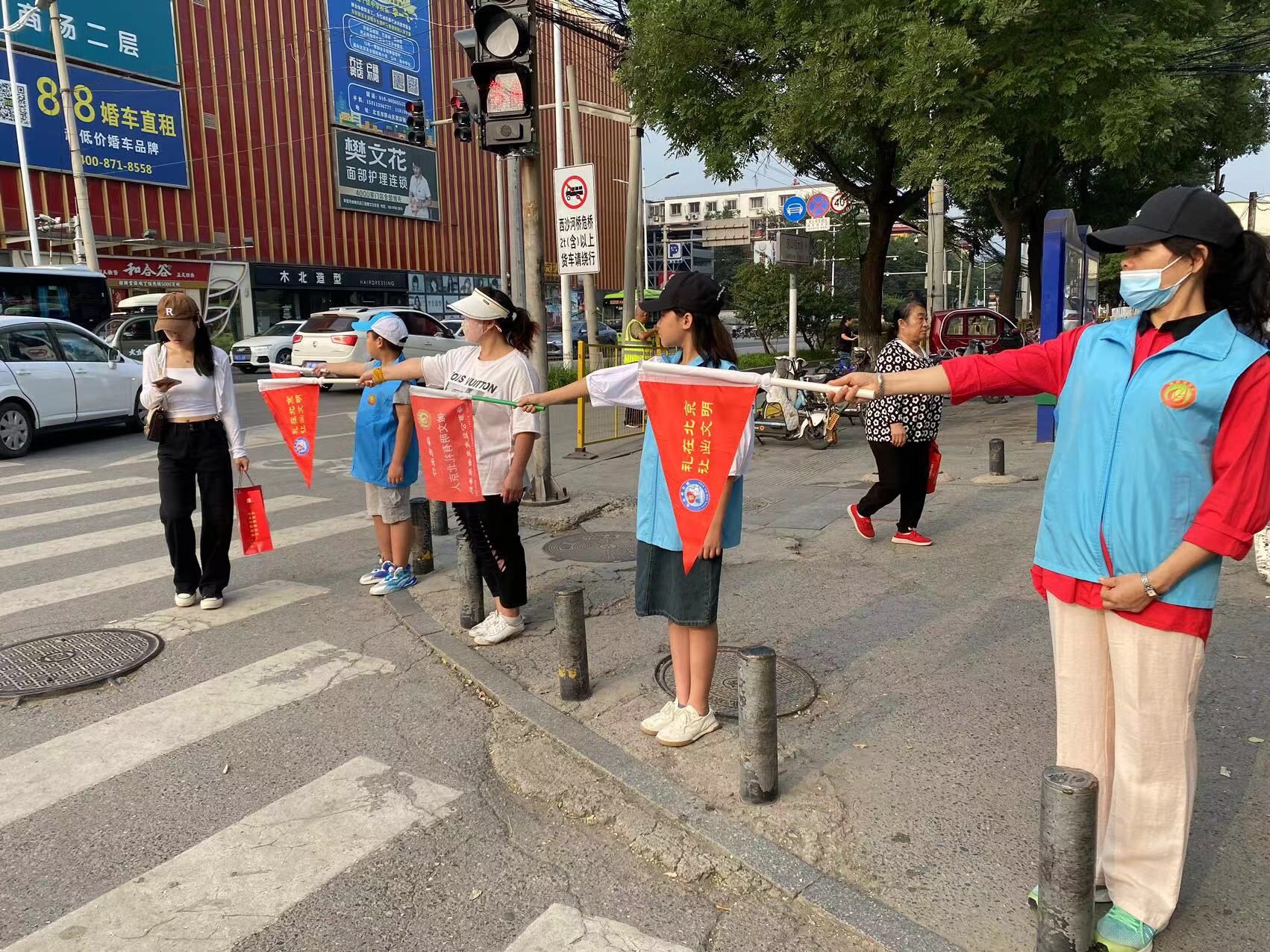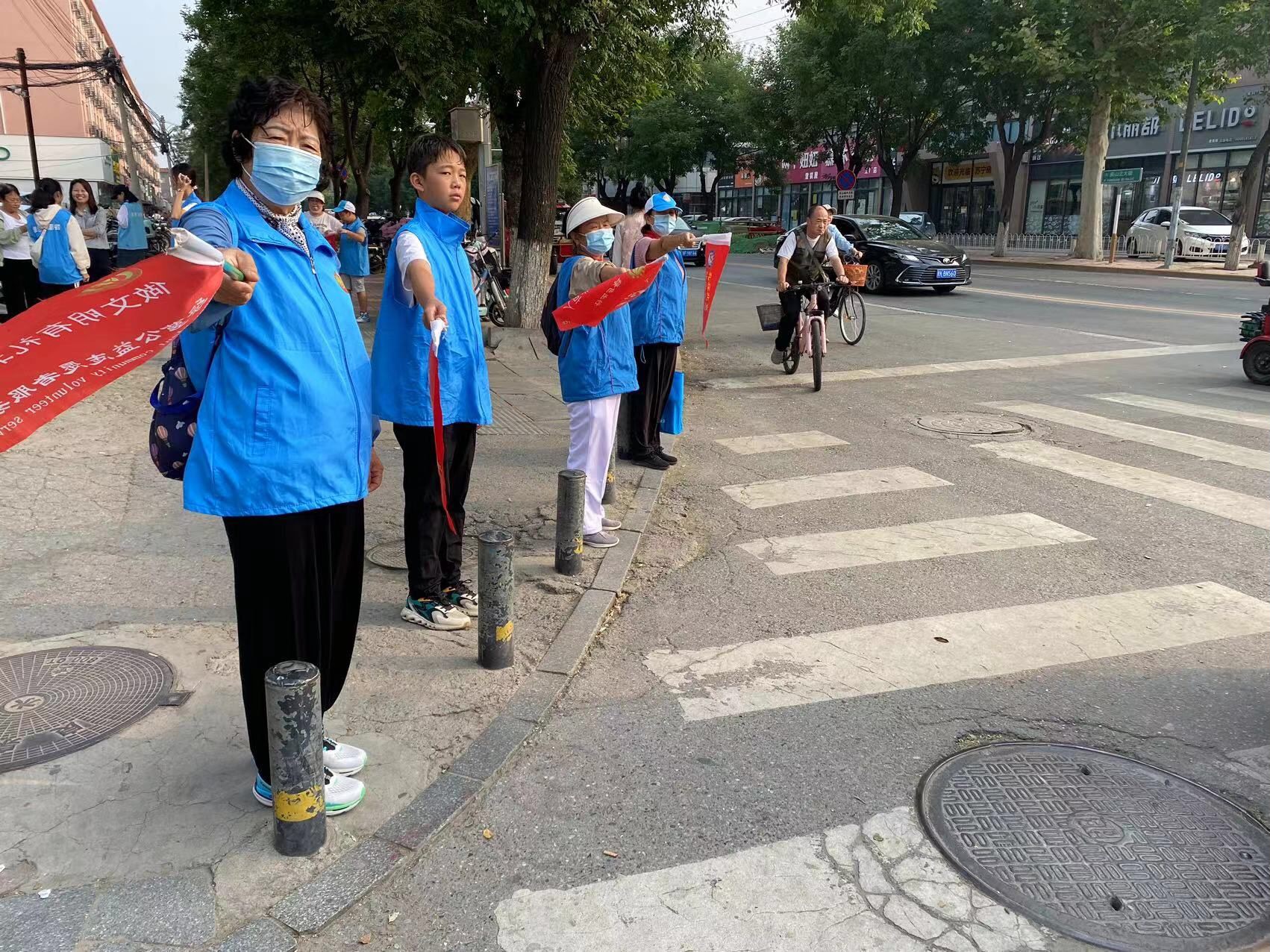 为引导更多人树立遵守交通规则的安全意识,营造文明、安全、有序、和谐的道路交通环境,2023年9月16日上午,绿萝志愿服务队“礼让斑马线”志愿活动在房山大角展开。