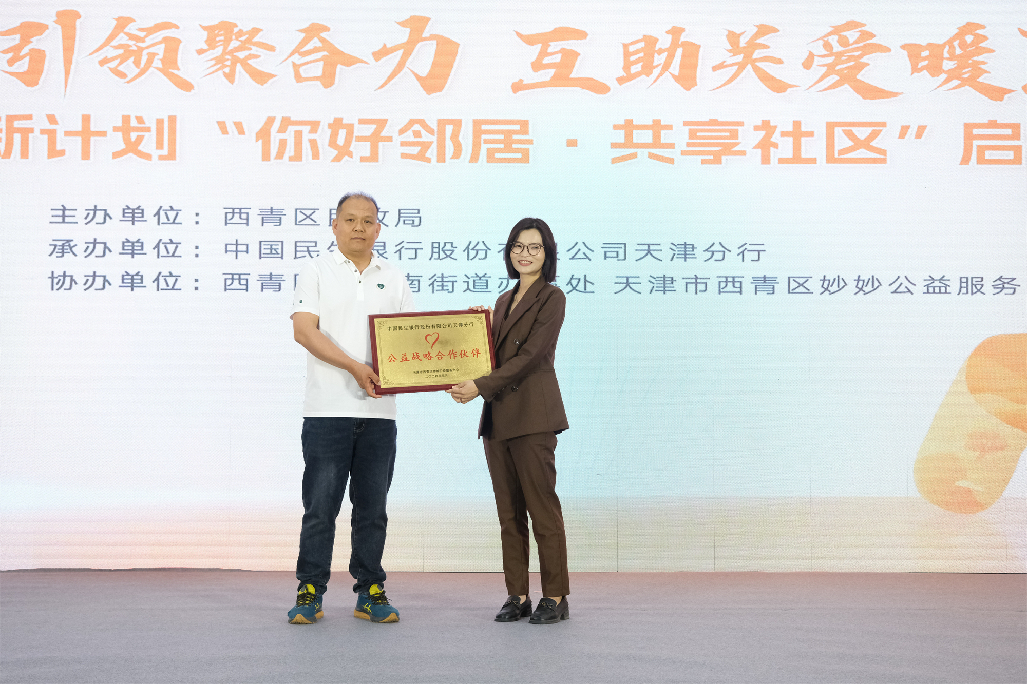 为深化社区服务建设,打造“最后一公里”的特色帮扶服务模式,中国民生银行天津分行与天津市西青区妙妙公益服务中心,达成“公益战略合作伙伴”,双方以满足居民多元化需求为目标,在志愿服务、活动共联、党建共建等多个领域开展深度合作。
