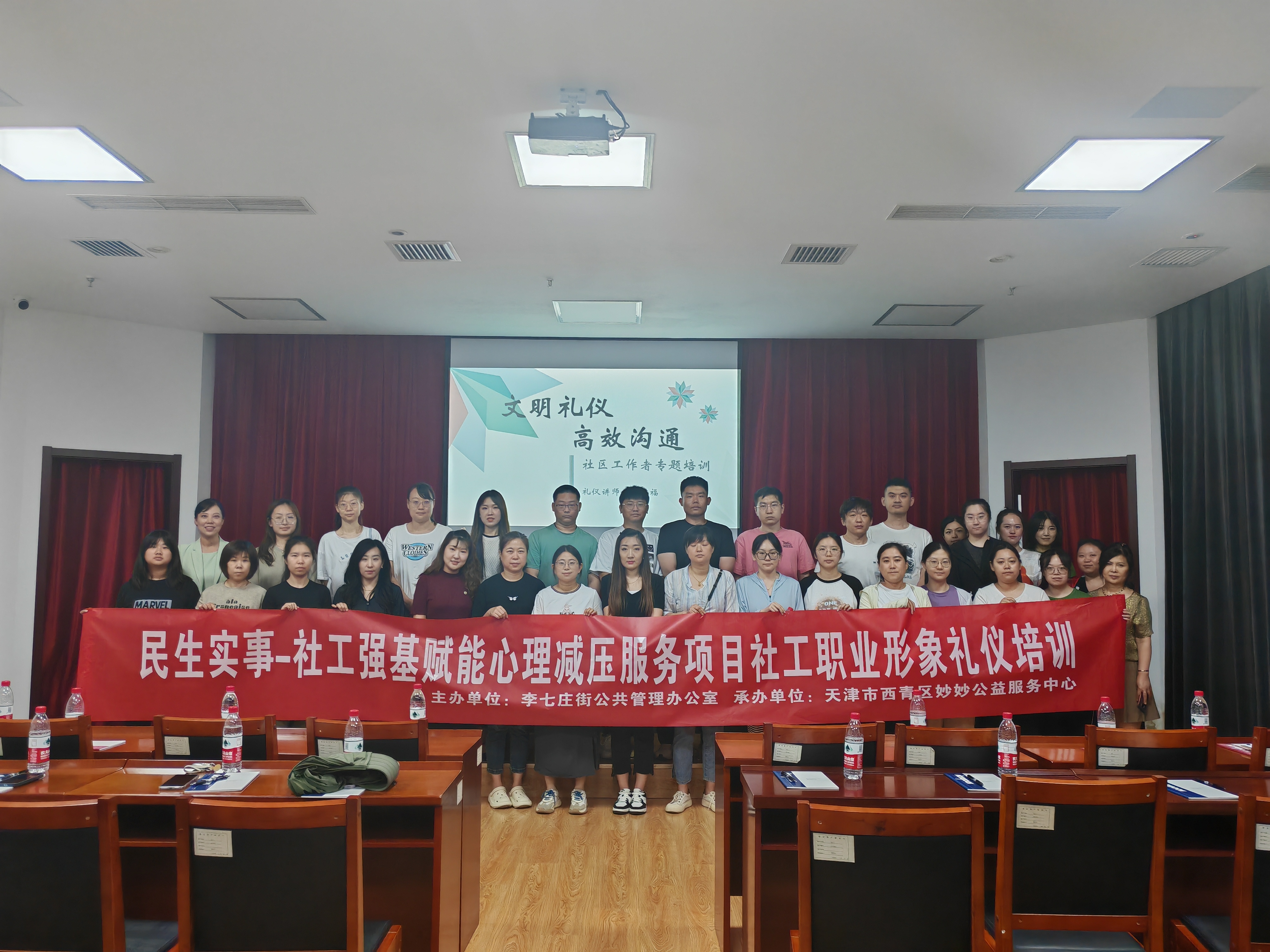 为持续推进社区工作者队伍的专业性及规范化,提升社区工作者的专业素质和履职能力。近日,西青区李七庄街道联合天津市西青区妙妙公益服务中心,开展“文明礼仪·高效沟通”社区工作者职场礼仪与沟通主题培训,近50名社区工作者参加了此次培训。