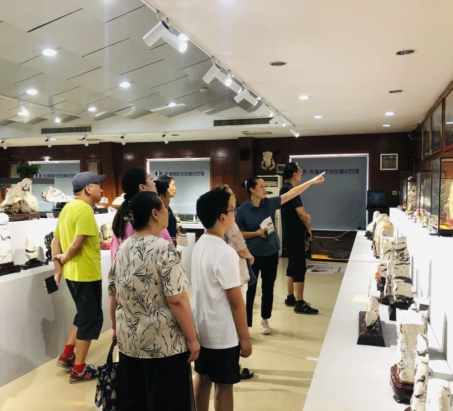 活动开始,由天津地矿珠宝的老师带领大家参观了“地出甄品 矿然天成”主题石展,向大家详细讲述各类不同化石的特点、形成过程等知识,品味奇石的奥妙,小朋友眼睛里更是闪烁着好奇的光芒,对于每一块有故事的化石都充满好奇,感叹时间凝结的浪漫与生命的奇迹。