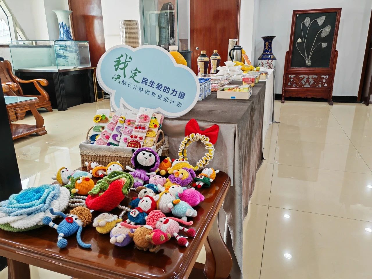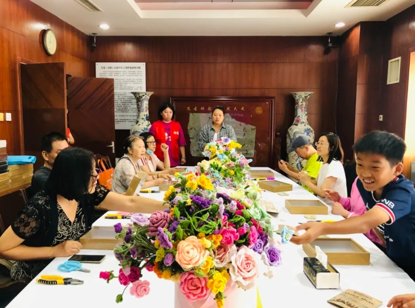 为持续搭建社区手工坊互助平台,扩大综合体后备支持力量,在中国乡村发展基金会和中国民生银行“第九届ME公益创新资助计划”的支持下,8月21日,天津市西青区妙妙公益服务中心携手中国民生银行天津分行与天津地矿珠宝,共同开展“钩织与化石:穿梭历史,邂逅自然之美”主题沙龙活动,将手工文创产品与斑斓多姿矿石进行跨界组合,旨在通过定期开展企业沙龙,带领大家在感受手工艺乐趣的同时组建企业联盟,建立企业资源库,持续创新丰富文化服务。