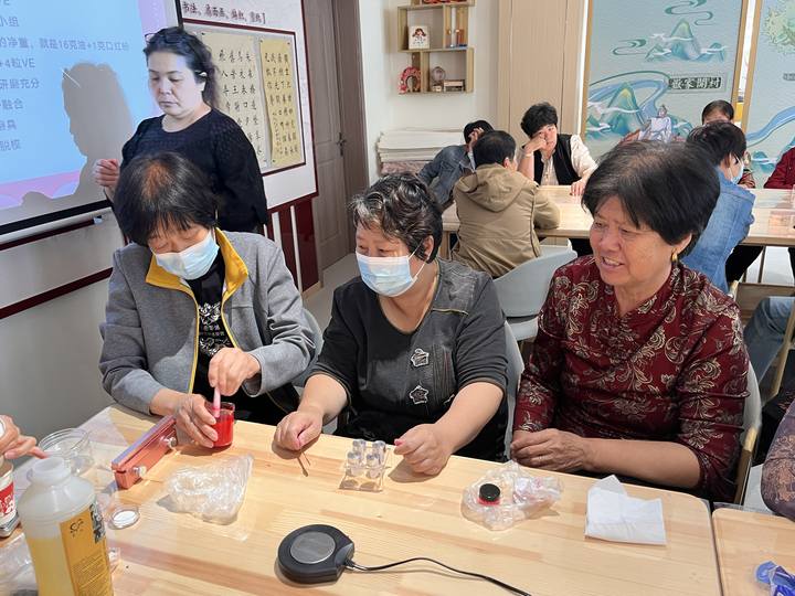 DIY口红课堂,其乐融融。平日里忙碌的妈妈们,褪去疲惫化身“手作达人”,沉浸在色彩与芬芳交织的奇妙世界中。从挑选色号、调配原料到亲手灌装,在欢声笑语中制作出属于自己的节日礼物。于阿姨高兴地举起自己制作的玫瑰色口红,笑容灿烂地说:“平时总为家庭忙碌,把自己抛在脑后,今天才发现,原来取悦自己也能这么简单!”