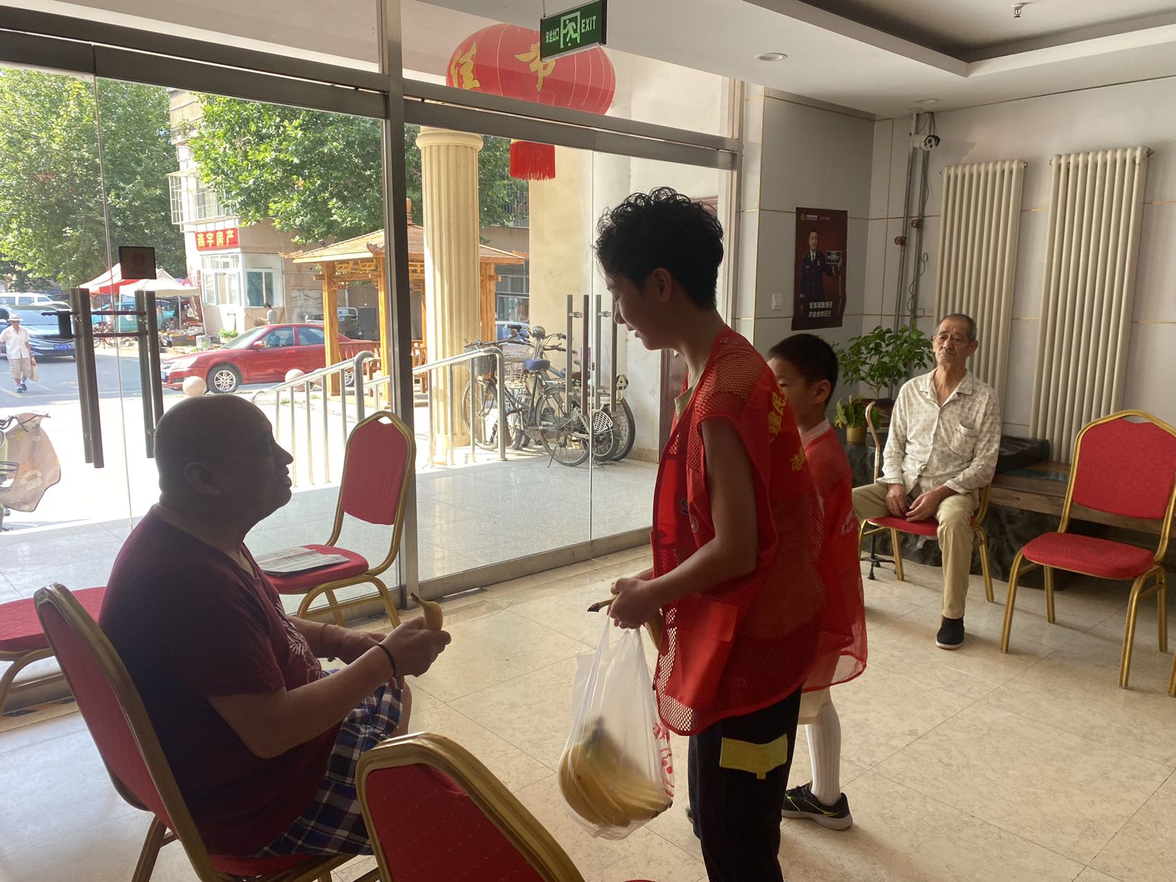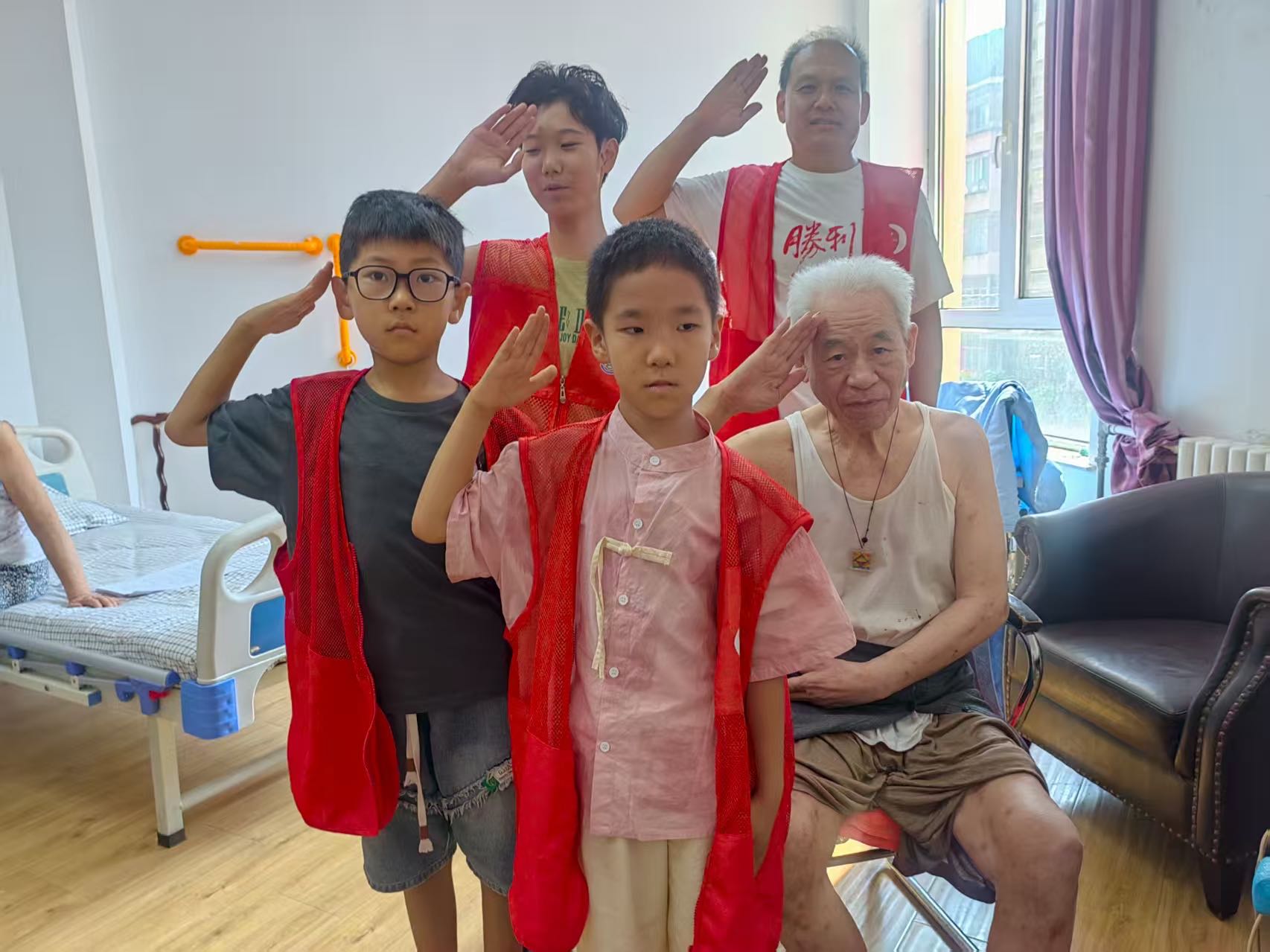 一进门,孩子们就主动向在场的爷爷奶奶们问好,清脆的童声瞬间打破了敬老院的静谧,老人们脸上欣慰的笑容从嘴角漫到眉梢,“好孩子,快进屋,外面热!”