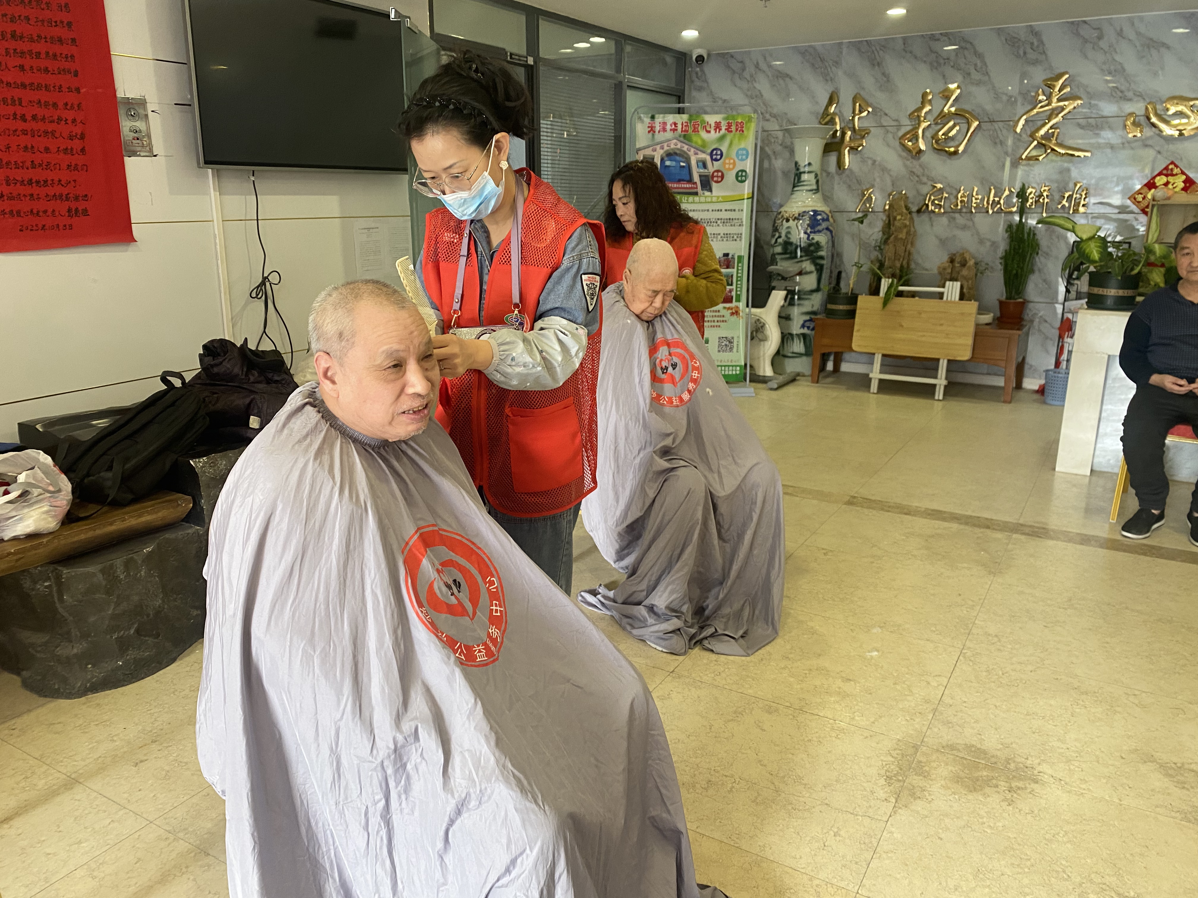 志愿者们特意带来了柔软的围布,小心翼翼地为老人们整理着头发。对于不能下床活动的老人,大家齐心协力,帮老人舒服地躺在床上,理出了干净整洁的发型。
