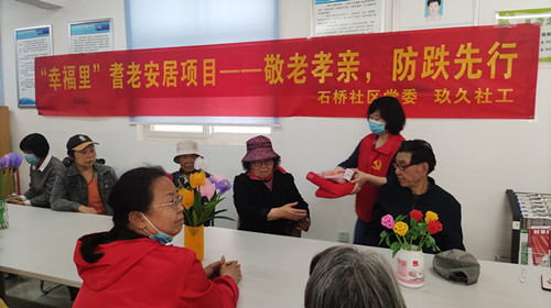 据悉“幸福里”耆老安居项目为金水区政府购买的大石桥街道石桥社区党群服务项目的特色服务项目,是为有居家安全隐患的中高龄长者及重残家庭提供居家安全知识宣传、“防跌菜单”的点餐服务(防滑垫、防滑拖鞋、起夜灯、沐浴椅、坐便椅、拐杖、轮椅、防撞胶、反光带、防压疮垫)和卫生间扶手安装项目,增强长者及其陪护者居家安全意识,改善长者居家环境,提高服务对象的居家安全系数,帮助长者有尊严地在社区生活。