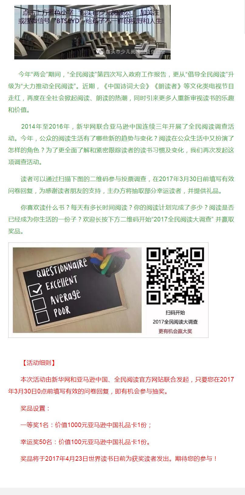 “全民阅读大调查”启动 参与赢好礼