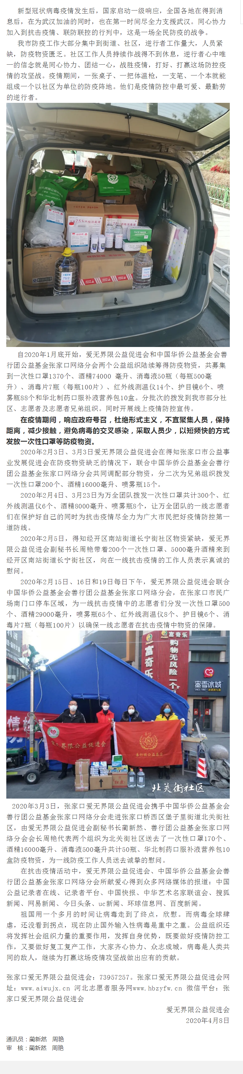 张家口爱无界限公益促进会携手中国华侨公益基金会 善行团公益基金张家口网络分会共同抗击疫情活动总结