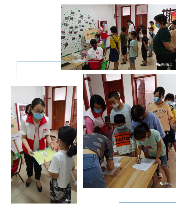 2021年8月17日,近邻社工承接运营在豫-028益童乐园项目正式开站。此次活动采用线下宣传+线上招募的方式进行。线上通知活动形式、招募方式、以及活动一周预告等;线下介绍项目内容、设置临时站点,由志愿者协助社工发放益童乐园项目专属文具包,由家长带领孩子报名、登记儿童信息、领取。活动当天,许多孩子在家长朋友的带领下前来临时站点领取文具包。社工在旁边详细介绍了本次活动的详情,听完后大家兴致满满,家长也在旁边激励孩子完成阅读打卡活动。