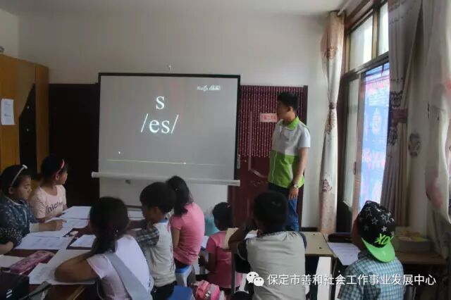 我中心驻黑崖沟村社工同时也联合保定学院家政家教服务中心为黑崖沟村一二年级的16名儿童开展了英语学习小组。黑崖沟村小学没有英语课,社工为孩子们开展英语学习小组,为孩子们将来的学习打下一个良好的基础,对孩子们接触外语有良好的启蒙。
