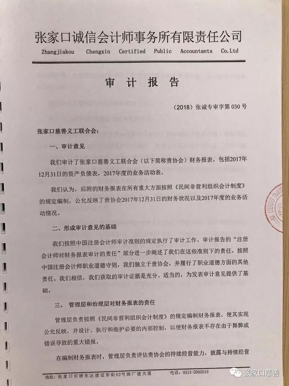 【公告】张家口慈善义工联合会2017年度财务审计报告公示