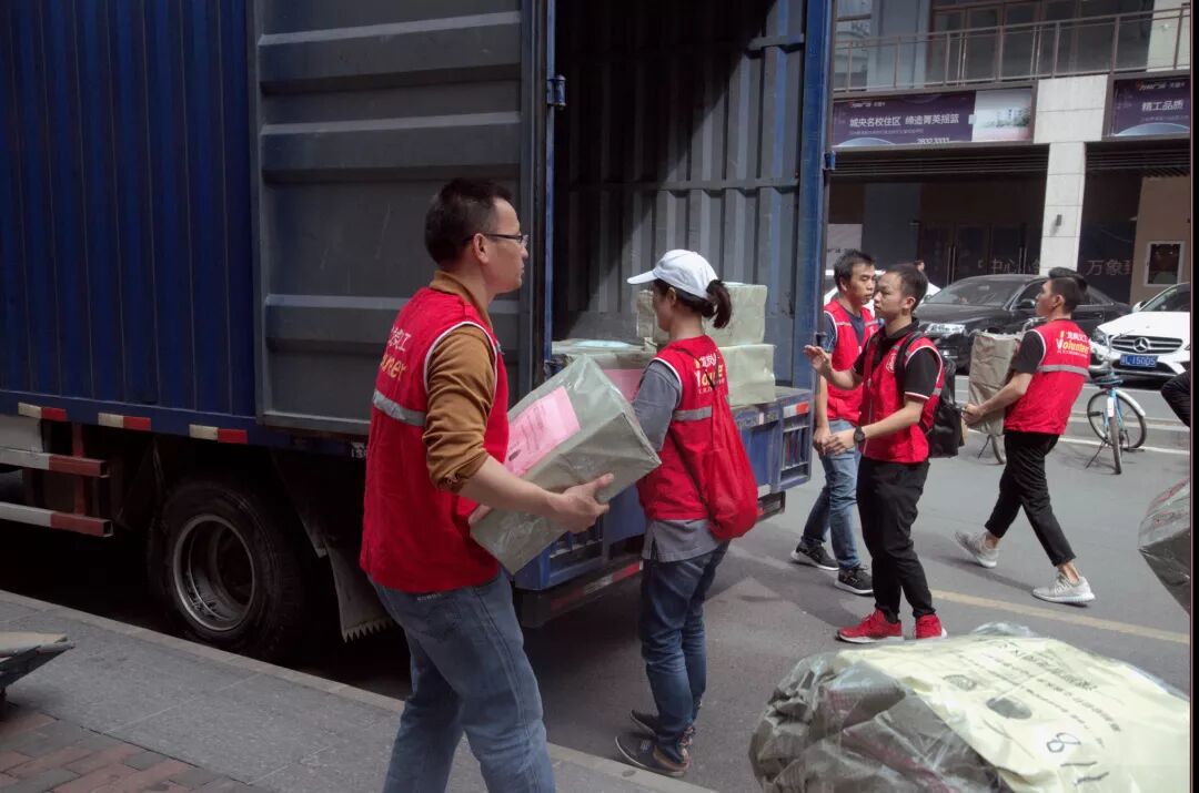 他们一箱箱放到拖车上,再一次次从15楼拉到一楼,途径空中花园、阶梯,汗水浸湿他们的衣服,汗珠一滴滴滑下,他们来不急休息,经过三个小时,两列装满图书、玩具、儿童牙刷、牙膏、篮球等的中型货车驶离,载着30万龙岗义工和4595名爱心人士的爱心出发,开始长达10天的行程,途径万里路,将爱、知识传递给新疆喀什的孩子们。