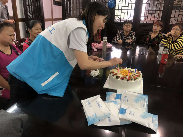 2019年9月20日上午,逸家社工在磁器口街道金蓉社区和美大院为计生家庭的老人们开展 “星缘友缘,有爱相伴” 2019年第三季度的集体生日会活动。通过在活动过程中运用社会工作鼓励、支持等专业方法,积极调动失独成员间的互动和分享经验,不仅增加了社工与计生家庭的良好关系,还增强组员对自我价值的肯定,同时与其他组员建立社会支持,从而帮助其进行社会参与,增加社会融入,达到治疗、互助提升能力的目。