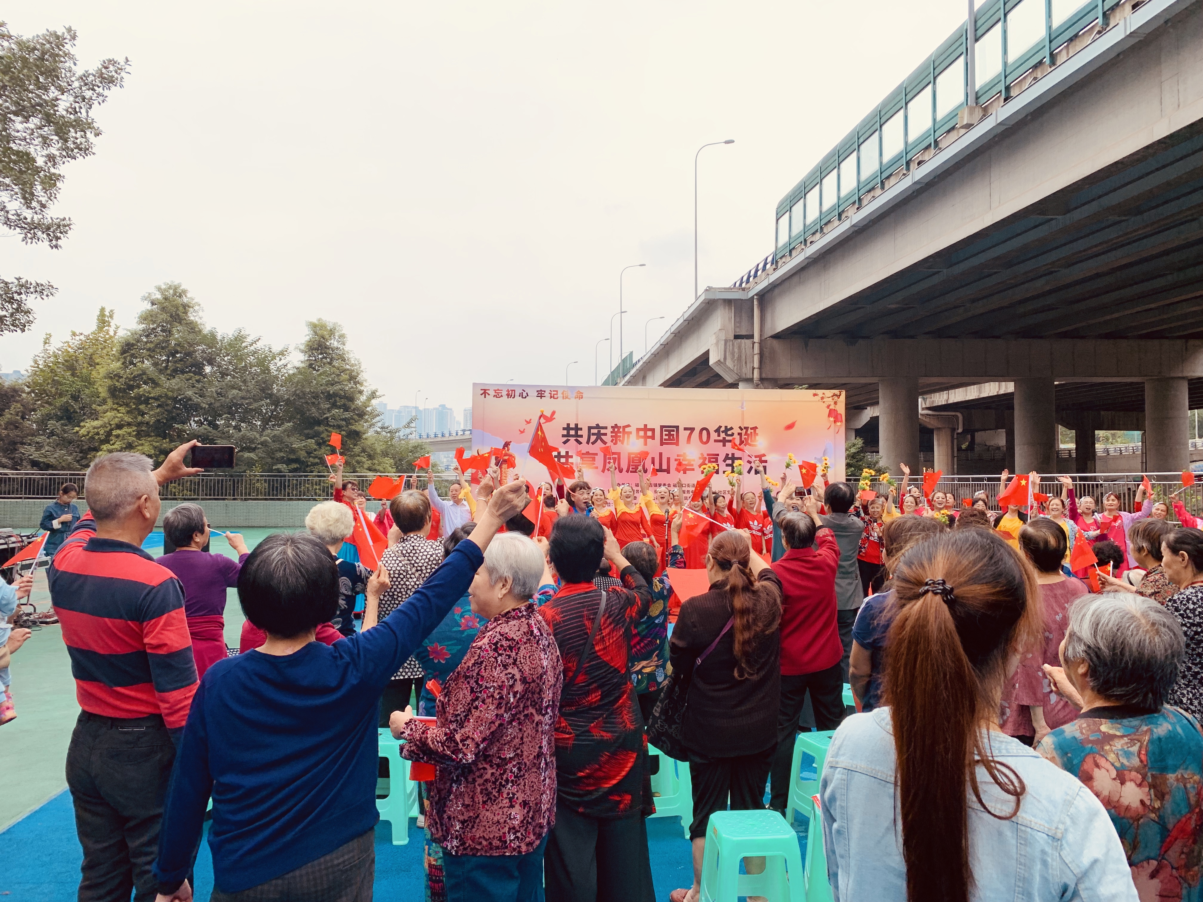 在新中国成立70周年华诞来临之际,为增强社区居民之间的交流互动,营造良好的社区爱国环境,共同学习国家精神、培育民族精神,2019年9月25日上午,凤凰山社区居委会联合逸家社工、凤凰山社区6支居民表演队伍,在凤凰山社区百年世家篮球场开展“共庆新中国70华诞·共享凤凰山幸福生活”国庆社区活动。