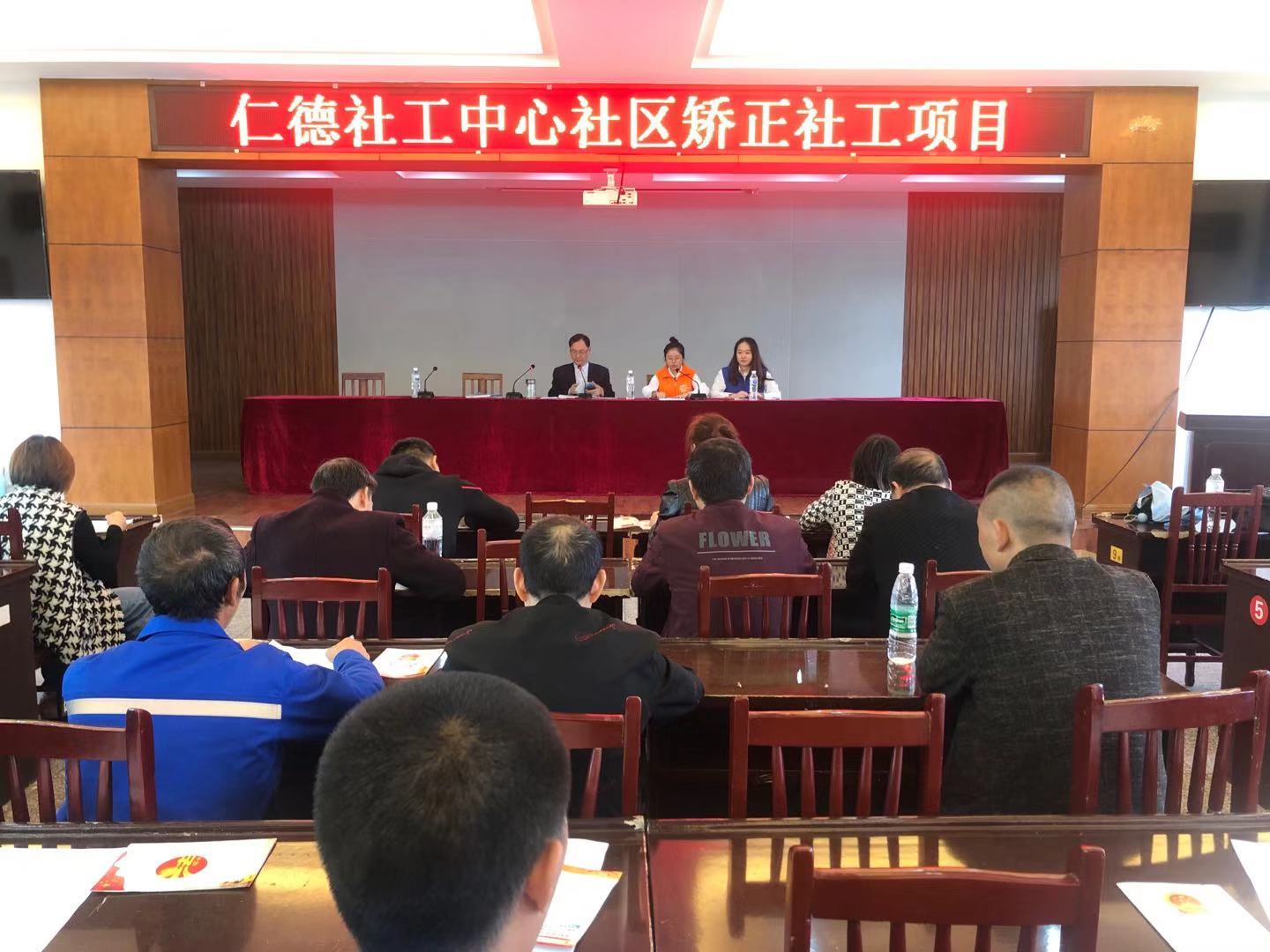 2019年10月15日下午,为进一步增强矫正对象法治意识,筑牢遵守法规底线,在南城司法所的指导下,仁德社会工作中心链接了西南政法大学金杜公益法律服务工作中心的志愿者,在南城司法会议室开展了“法律宣讲”活动。