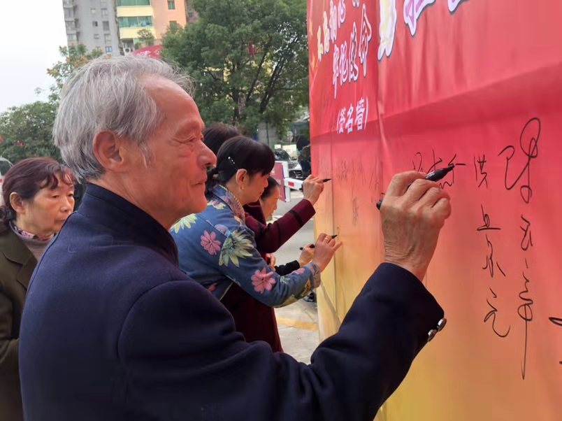 2019年10月24日上午,长沙市开福区通泰街街道寿星街社区和长沙市岳麓区微点公益服务中心在潮宗御苑前坪举办了“不忘初心跟党走