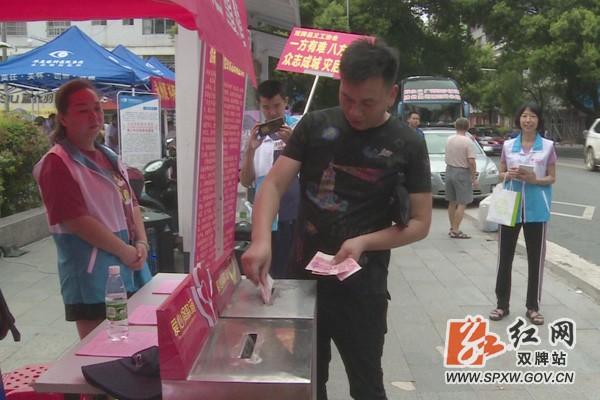 本网讯 (双牌融媒记者 陈虹)7月20日,双牌县义工协会在双牌县团委、县文明办的领导下,在双牌县文化广场和双牌县步步高超市门口开展了为期两天的“情系灾区献爱心众志成城建家园”大型募捐活动。
