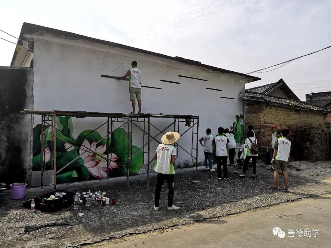 大学生志愿者和小学生们组成训练有素的彩绘志愿服务队,用彩绘的方式,将陈旧的外墙进行美化工程,真实还原当地的乡土风情、再现了人民对美好生活的向往。