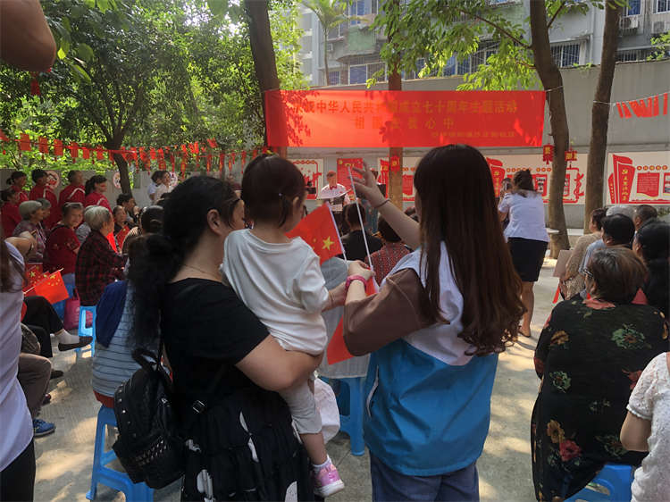 国旗迎风展,秋阳迎笑脸,2019年9月26日,为庆祝祖国70周年华诞,弘扬爱国主义精神,沙坪坝街街道沙正街社区以及逸家社工沙正街社区开展了“祖国在我心中”文艺表演活动。