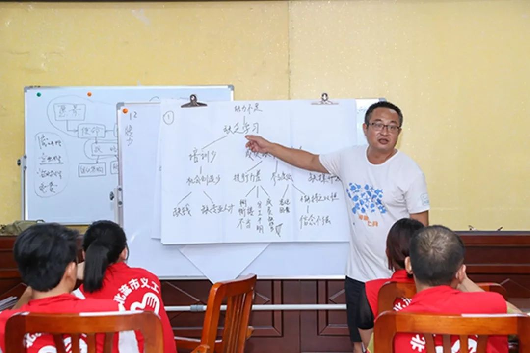 为了增强义工、志愿者的凝聚力与专业技能,2019年8月24、25日,经过一个月的提前预约,我们有幸邀请到了罗杨博士为北流市义工协会的义工会员、志愿者开展能力建设培训。罗杨博士任广西汉达社工服务中心理事、广西公益联盟顾问、广西八桂义工协会顾问等。他丰富的经验与精彩的授课让受训义工、志愿者们受益匪浅。让大家通过学习深入了解了愿景、使命、价值观对于社会组织发展的重要性,同时大家通过问题树的练习分析,找出了协会发展动力不足的原因等。