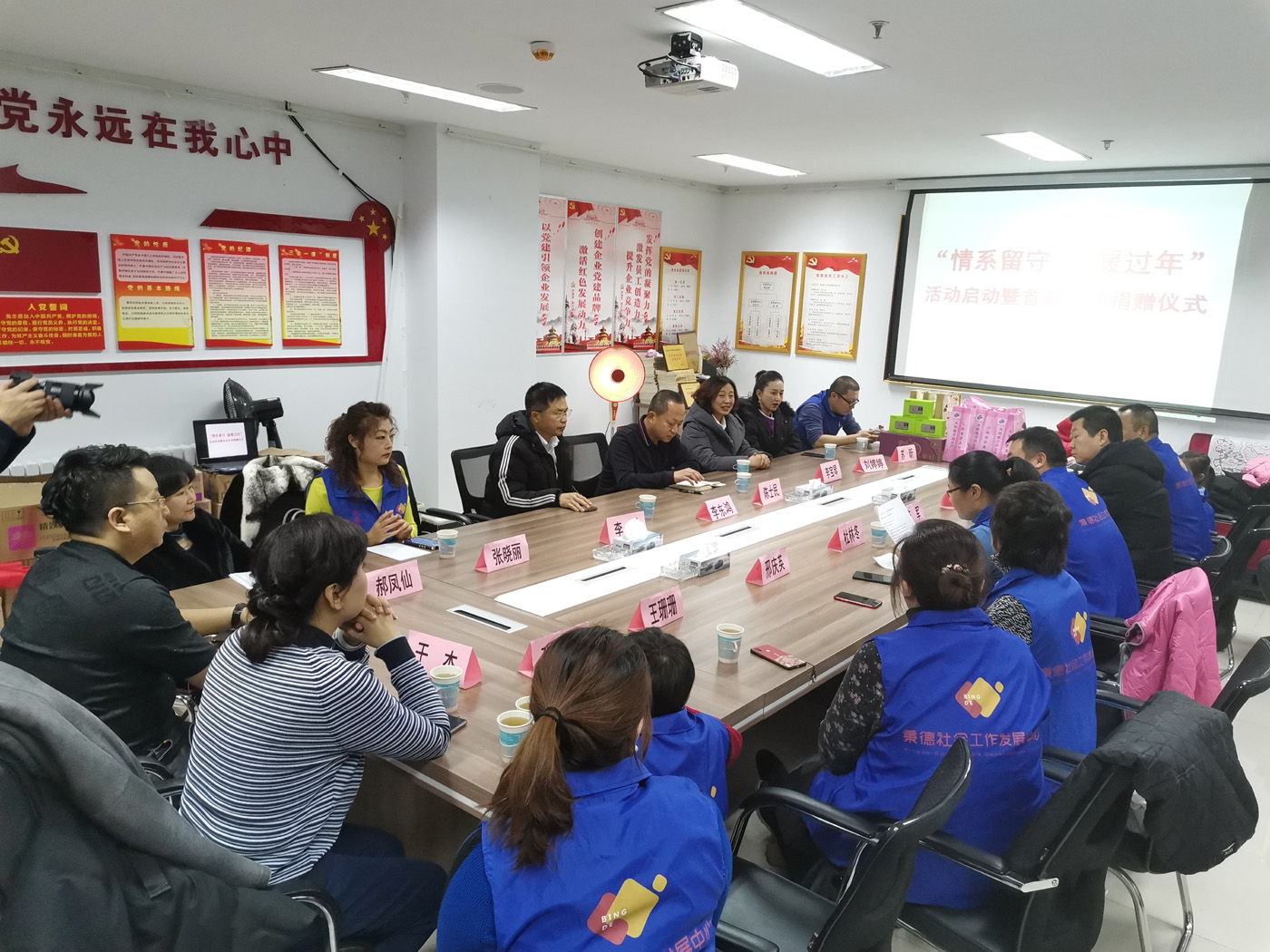 2020年1月16日下午,由秉德社会工作发展中心主办的“情系留守 温暖过年”活动在红旗楼商会会议室举行启动仪式和首站捐赠仪式。出席本次活动的领导和嘉宾有张家口市社会工作联合会常务副会长、秘书长赵丹,副秘书长涂慧雯;张家口秉德社会工作发展中心总干事李军,监事杜林冬;红旗楼商会常务副会长、秘书长陈士民,常务副会长李东鸿,党建指导员杨文杰;张家口新闻传媒集团频道副总监,《师说》栏目制片人于杰,大型活动部主任,《师说》栏目导演兼主持人陈晓飞;张家口市第五中学北校区德育处副主任刘婷婷;蔚县益海助学中心主任李宝琴,蔚县天阳太阳能有限公司总经理李财;以及红旗楼商会会员代表和工作人员,秉德社工志愿者代表26人出席活动。捐赠仪式由杜林冬主持。