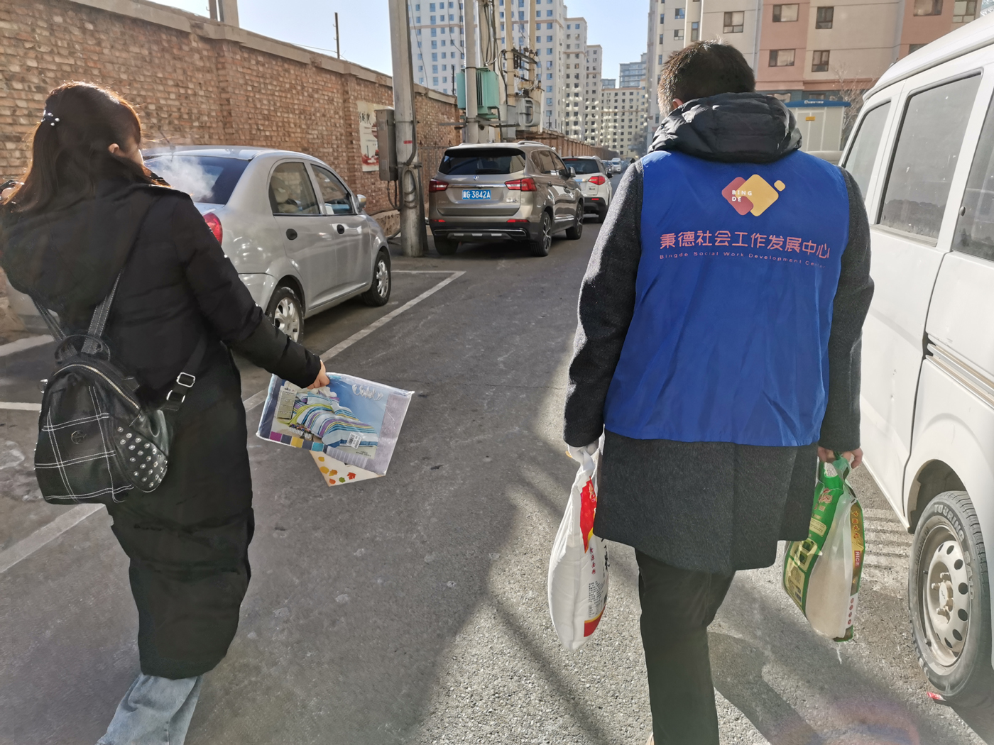 上午9:30,张家口秉德社会工作发展中心工作人员在富强路社区工作人员的带领下开始了对富强路社区3户失独家庭和2户贫困家庭的入户慰问。