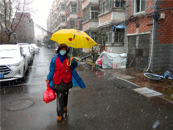 昨天的风雪,并没有阻挡住黄手环行动蚌埠市合作团队志愿者积极参与社区的线下执勤。
