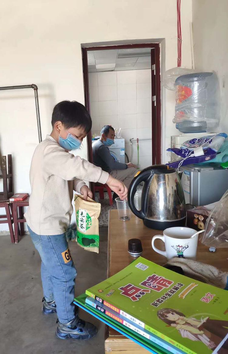 经过一个小时的车程, 中共慈利县壹禄福公益慈善协会支部党建专干、协会秘书长兼许家坊分会会长王喻带领新时代文明实践中心壹禄福爱心单位小易文化培训学校的志愿者们来到零溪镇朝阳地缝马伟文小朋友家,因为承包了一大片土地,他的爸爸妈妈忙的顾不上小伟文,只有他和爷爷奶奶在家,奶奶坐骨神经痛,走路都不太方便,懂事的马伟文主动承担起倒茶的工作,看着小小的手奉上的热茶,奶奶欣慰的笑了,志愿者们都夸王伟文真懂事。