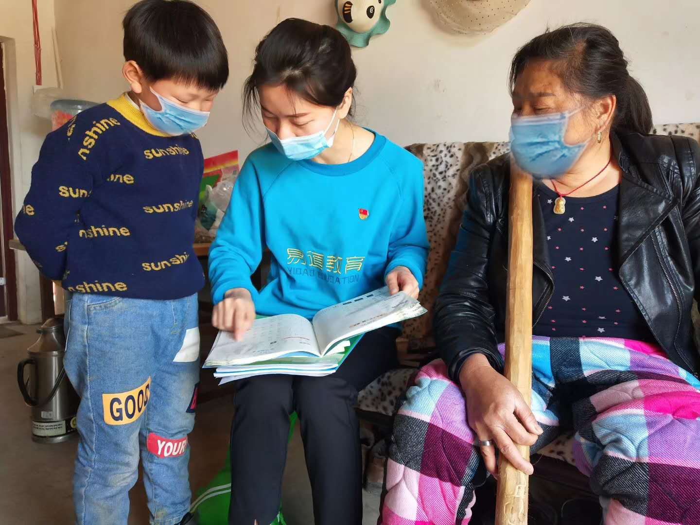 因为“新冠”疫情,学校迟迟开不了学,王老师给马伟文送来了辅导书,并辅导学习,小伟文也非常认真的听王老师讲课。