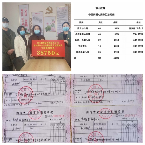 自新型冠状病毒感染的肺炎疫情爆发以来,中共慈利县壹禄福公益慈善协会支部认真贯彻落实市、县党委政府关于疫情防控工作的各项决策部署,以党建引领小善汇聚大爱,切实担负起防控的重要责任,充分发挥党组织的战斗堡垒作用,积极参与筹款筹物、防控宣传等志愿服务活动。