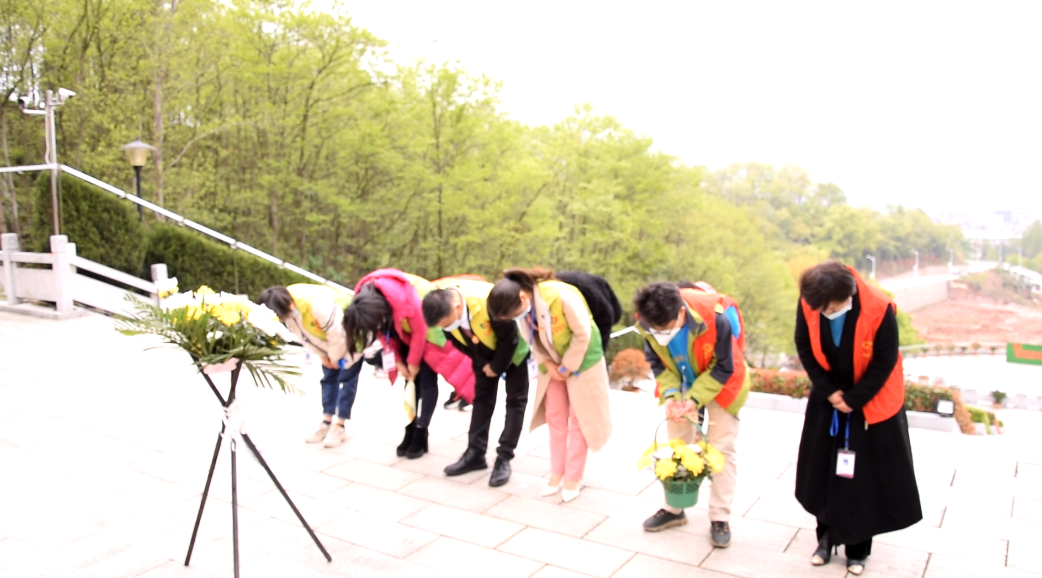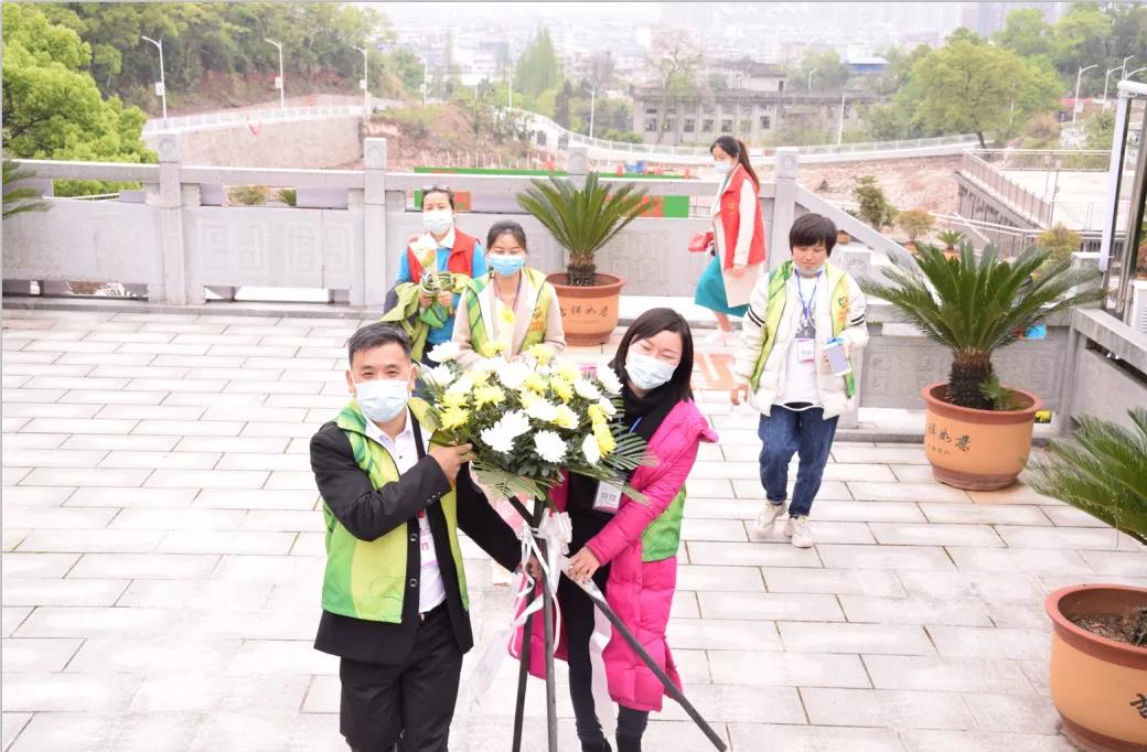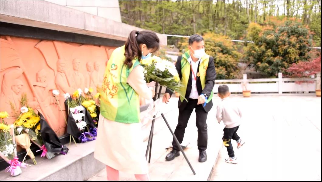 新时代文明实践中心壹禄福公益慈善协会志愿服务队向革命英烈献花。