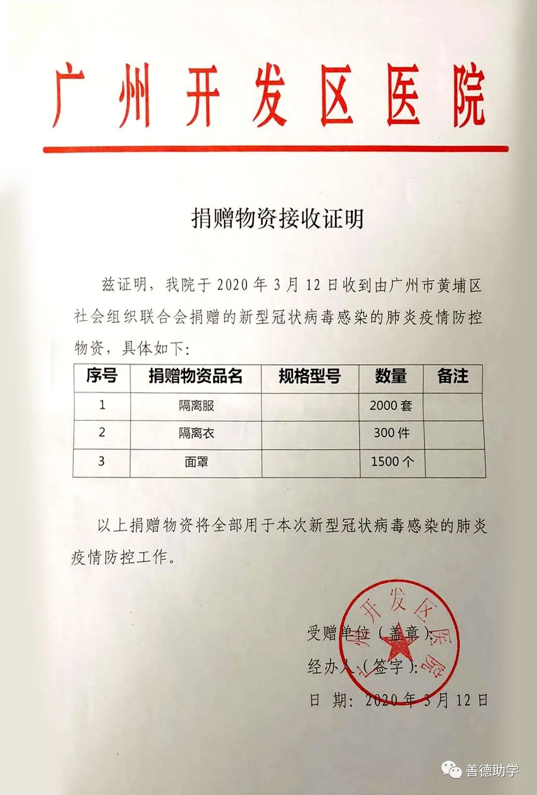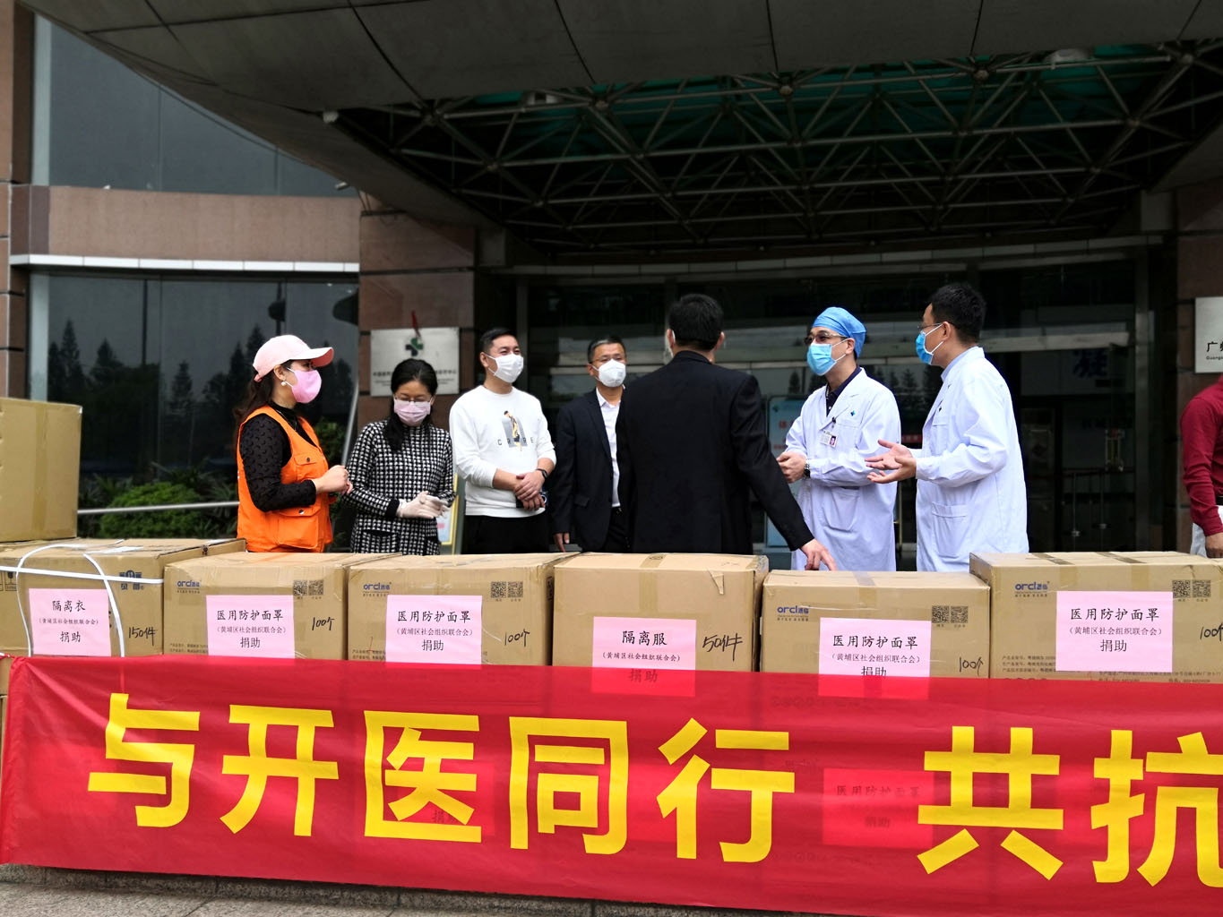 3月12日上午,黄埔区社会组织联合会、广州市黄埔区开发区企业联合会、广州市黄埔(开发)区税务局、广州开发区善德助学促进会及社会爱心人士前往广州开发区医院慰问,并送上防护物资。