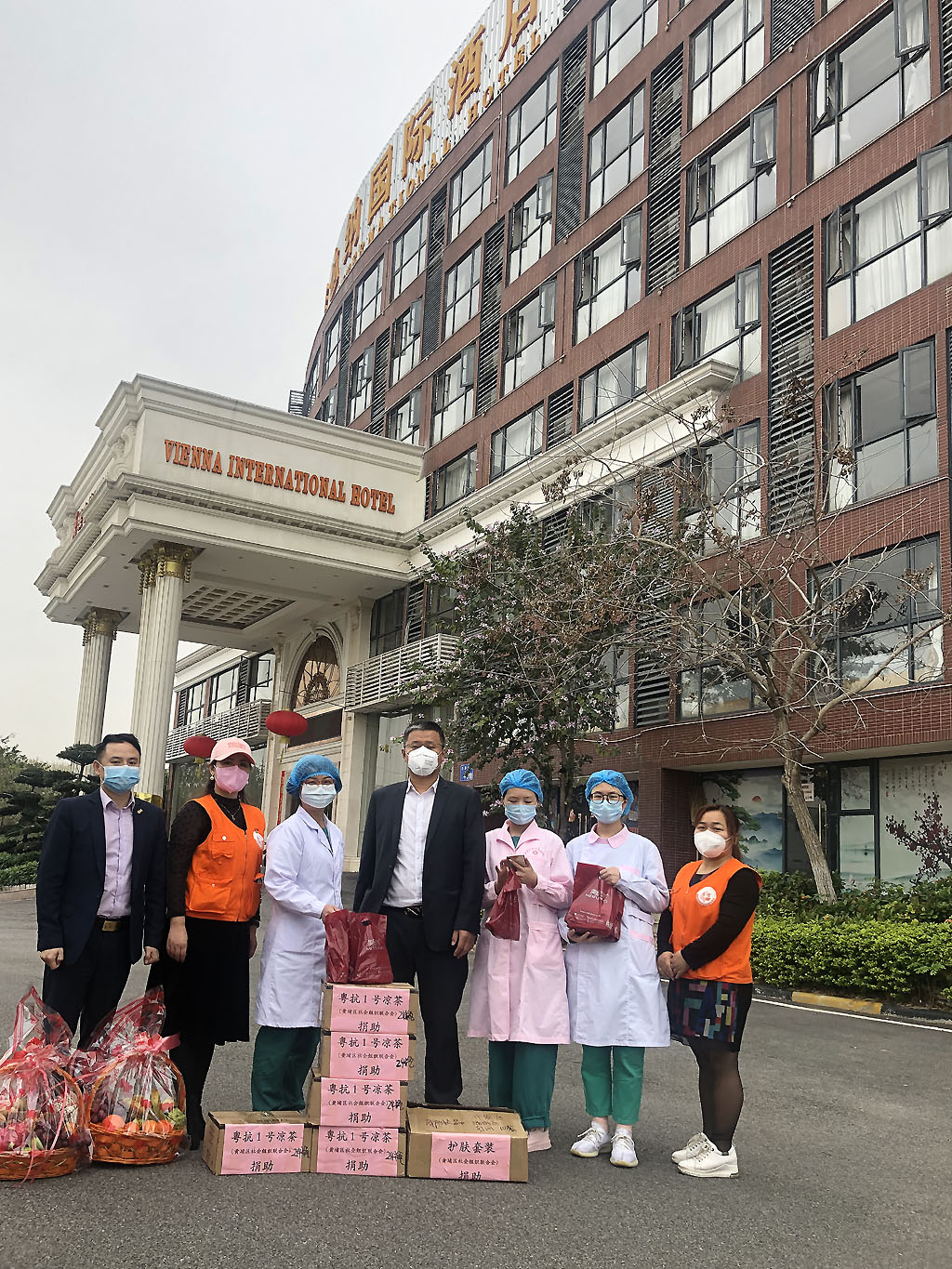捐赠仪式后,夏晓英会长与院方负责人进行交流。陈副院长提到,由于工作的特殊性,很多同事们一个多月没有回家了,无论身体或心理都觉得很累,这次慰问活动,给予了我们极大的鼓舞和动力。非常感谢社会上有这么多爱心人士对我们的关怀,请代我们跟大家致谢。同时,我们将不负众望、积极做好抗疫防治工作,争取早日战胜疫情,回家团聚。