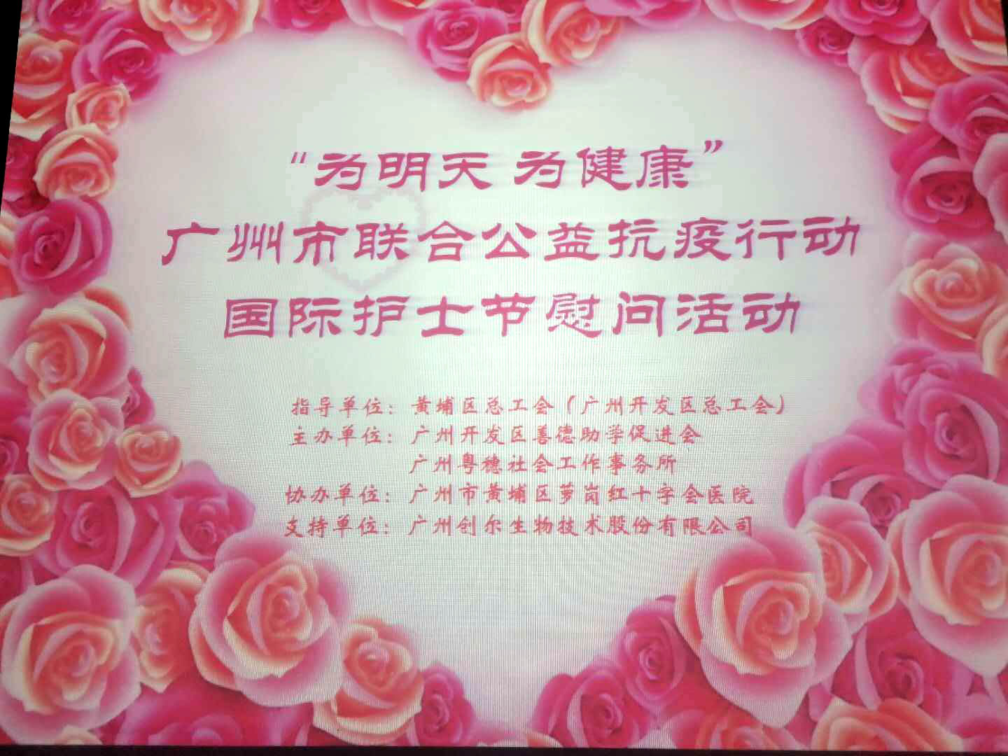 5月12日国际护士节当天,广州开发区善德助学促进会、广州粤穗社会工作事务所,在区总工会的指导下,在黄埔区萝岗红十字会医院开展关爱最美逆行者——“为明天 为健康”广州联合公益抗疫行动,为每一位最美逆行者送上关爱,并向院内159名护士赠送总值51000元的关爱大礼包。