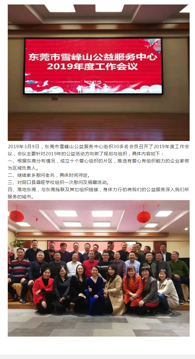 东莞雪峰山公益服务中心2019年度工作会议如期召开