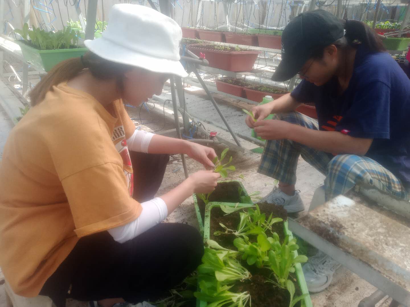 第一眼浮入我眼帘的便是一排排嫩绿的植物,它们整齐的摆放在那里,绽放着自己的生命力。看到这些绿油油的生物,我不由得对它们产生了钦佩和感叹。在和亲切的工作人员打完招呼后,我就正式的开启了我一天的志愿工作。第一项工作就是给秧苗移栽,为的是让它们长得更加旺盛。我把秧苗从已有的地方挖出来后,挑拣、分炼到新的培养器具中,然后把它们整齐的摆放在一起之后,就是给它们浇水,但需要注意的是一定要把它们浇透水,这样才能保证它们供水量的充足,茁壮生长。下一项工作就是放种子,为了让他们更好的生根发芽,每一个小坑最好放两粒小种子,这是一项考验我耐心和细心的工作,同时也让我体会到了创造新生命的快乐。午饭之后的最后一项任务就是给韭菜除草以及把它们去除旧根并移栽移植到新的培养器具中,让它们长得更密,更茂盛。