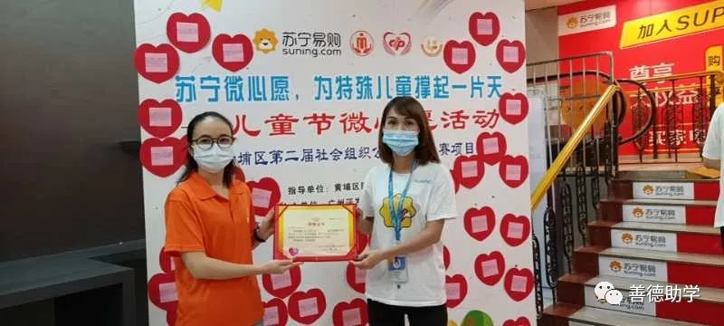 感谢社会各界对特殊儿童的关注,以及对善德助学会的支持。稍后,广州开发区善德助学促进会将继续联合苏宁易购等爱心商家组织一系列的公益活动,倡导社会各界一起来关注特殊儿童及其家庭,共同为特殊儿童撑起一片天!黄埔区民政局、福彩公益